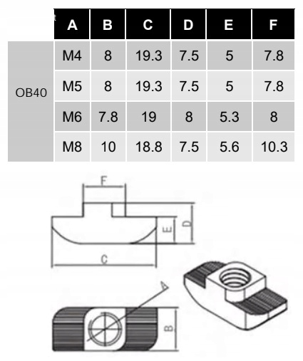 Гайка шлицевая ударная M8 WAGNEY для профилей серии 40х40 с пазом 8 мм и шириной гнезда более 18 мм.