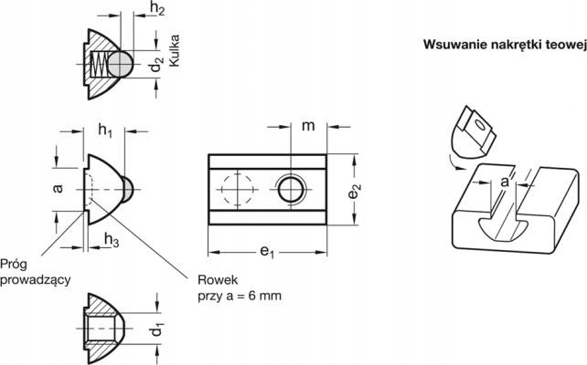 ➡️ Т-ОБРАЗНАЯ ГАЙКА T6 С ПРОФИЛЬНЫМ ШАРОМ M6 ⬅️