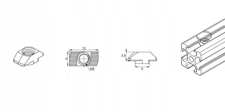 Т-образная гайка — это универсальный крепежный элемент, который хорошо вписывается в паз нашего алюминиевого профиля 2020 года, который имеет специальные пазы с 4 сторон, что позволяет создать конструкцию, обеспечивающую линейное перемещение.