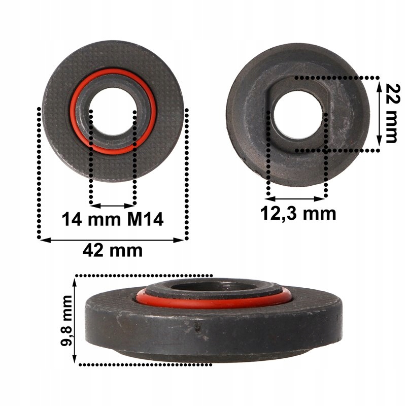- Гайка универсальнаядля углошлифовальных машин с резьбой М14 (13,8 мм, как измерить резьбу показано на фото)
