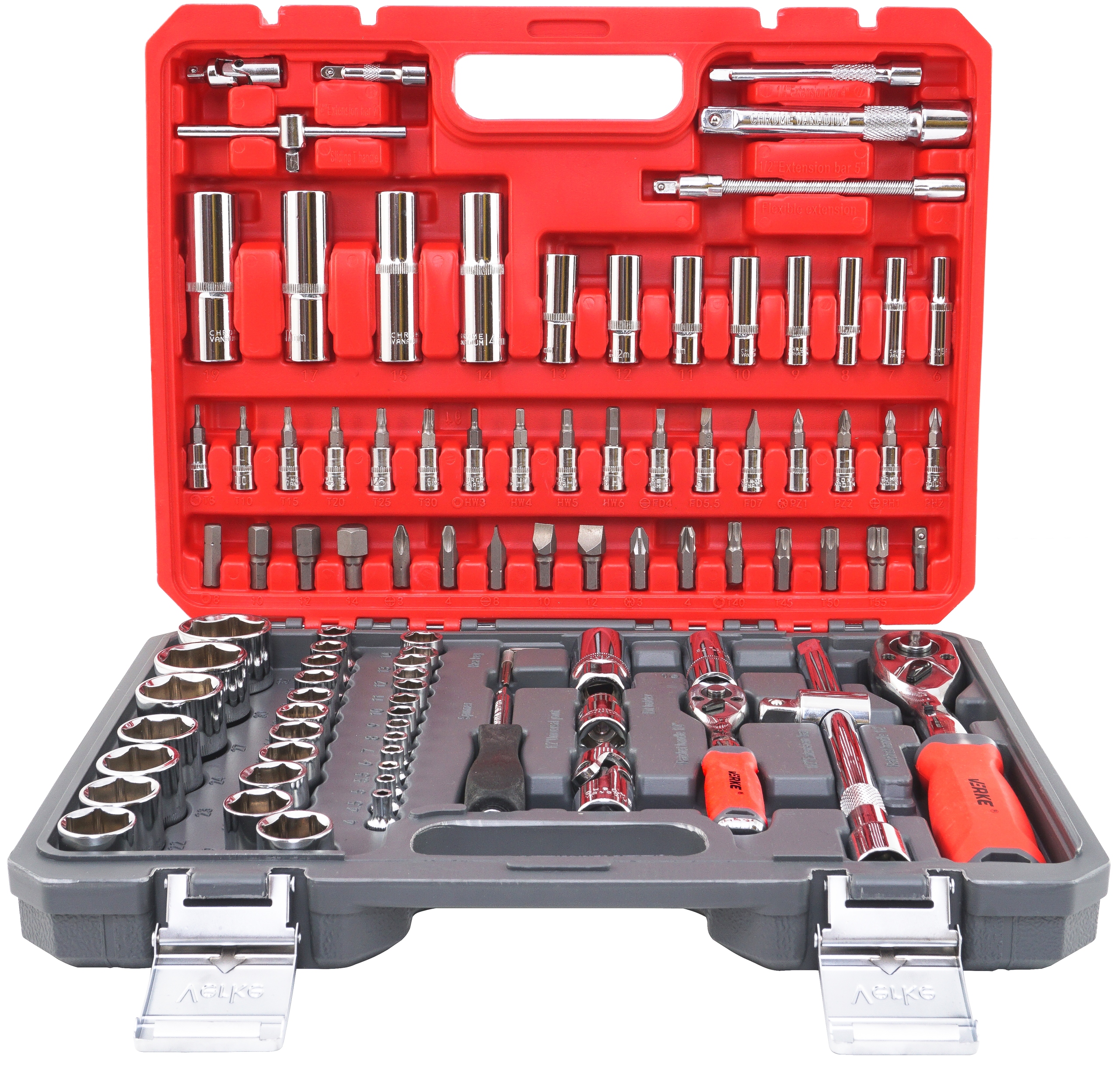 》》》 НАБОР ПРОФЕССИОНАЛЬНЫХ ТОРЦЕВЫХ КЛЮЧЕЙ 94 ЭЛЕМЕНТА CR-V МОЩНЫЕ ХРАПОВКИ С МЕХАНИЗМОМ 72 ЗУБЦА VERKE PRO + НАБОР ОТВЕРТОК НАТЯЖИВАЮЩИХ 150 мм CR-V 2el VERKE《《《