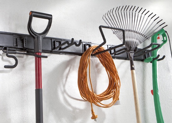 Благодаря Golijat крюки, лопаты, садовые шланги, кабели и электроинструменты найдут место в каждом гараже, мастерской или подвале. Крючки изготовлены из стали, а элементы, соприкасающиеся с подвешенными предметами, покрыты резиновым покрытием, защищающим от царапин.