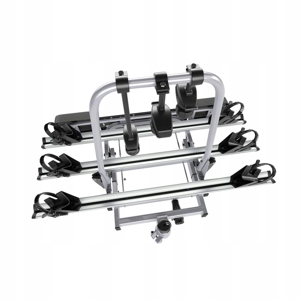 - Стойка позволяет комфортно перевозить три велосипеда, а прочная стально-алюминиевая конструкция гарантирует ее прочность и долговечность, а также элегантный внешний вид.