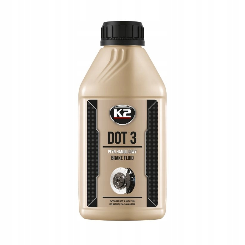 K2 DOT 3 Отвечает требованиям действующего в Польше стандарта PN-C-40005:2002, а также американским стандартам FMVSS 116, DOT3, SAE J 1703. Тормозная жидкость K2 DOT 3 предназначена для замены во всех типах автомобилей, где инструкция по эксплуатации требует использования жидкости DOT 3 или R3.