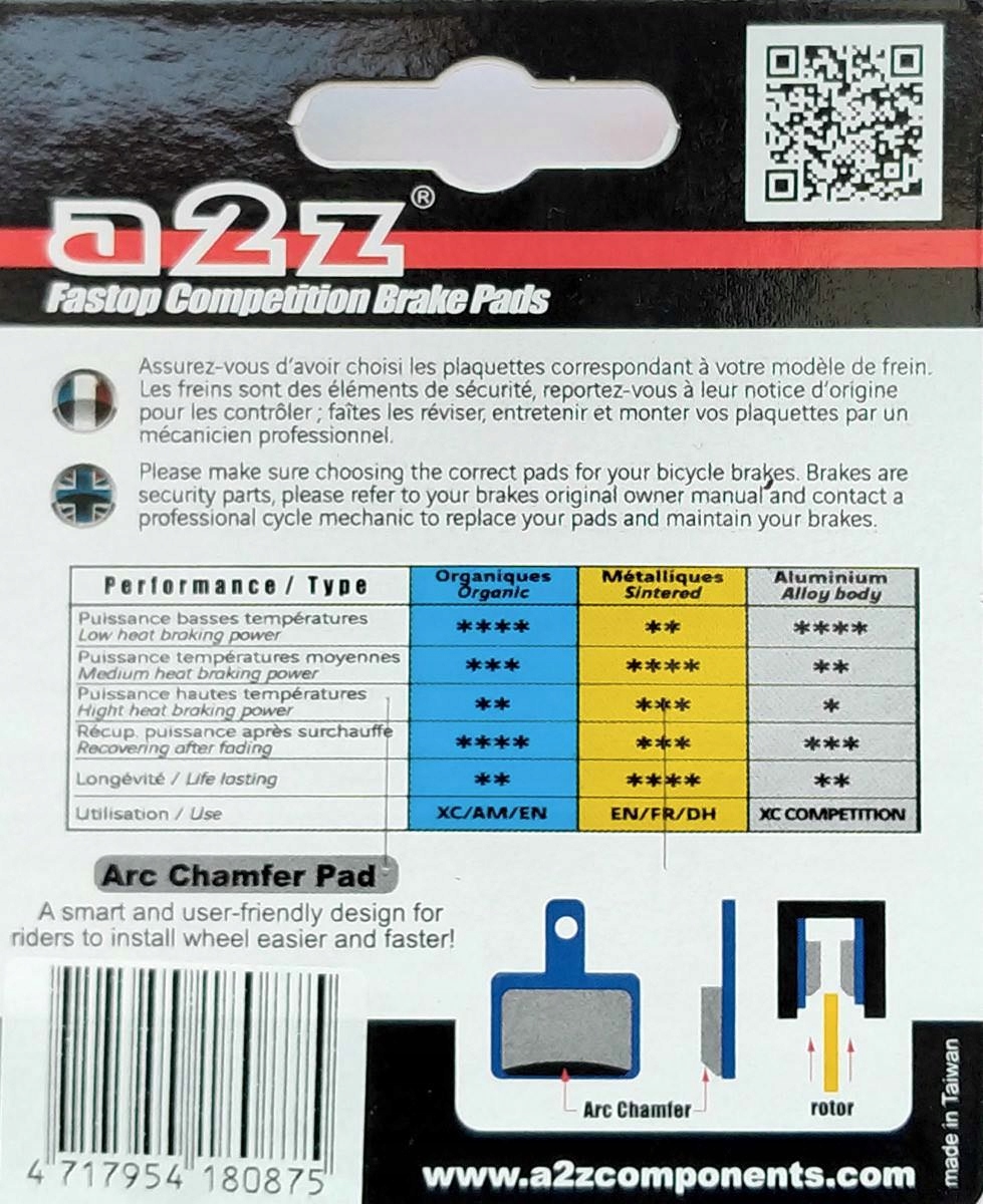 A2Z Blue - Характеризуются высокой термостойкостью, до 500oC, что сводит к минимуму «выцветание». Специальная смесь, разработанная компанией Fastop, обеспечивает улучшенное торможение и управляемость в любых условиях, а также дополнительно оснащена индикаторами износа, указывающими на необходимость замены колодок.