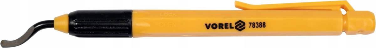 Инструмент для снятия заусенцев с вращающимся сменным лезвием. Лезвие изготовлено из стали М2, а корпус – из прочного пластика.