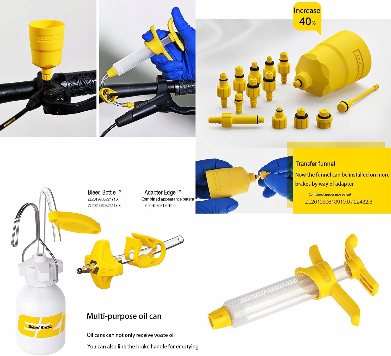 12 типов нефтяных соединений, в том числе воронки, подходящие для большинства горных тормозов. Воронка также может быть перемещена через разные порты.