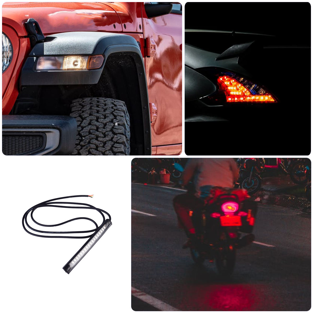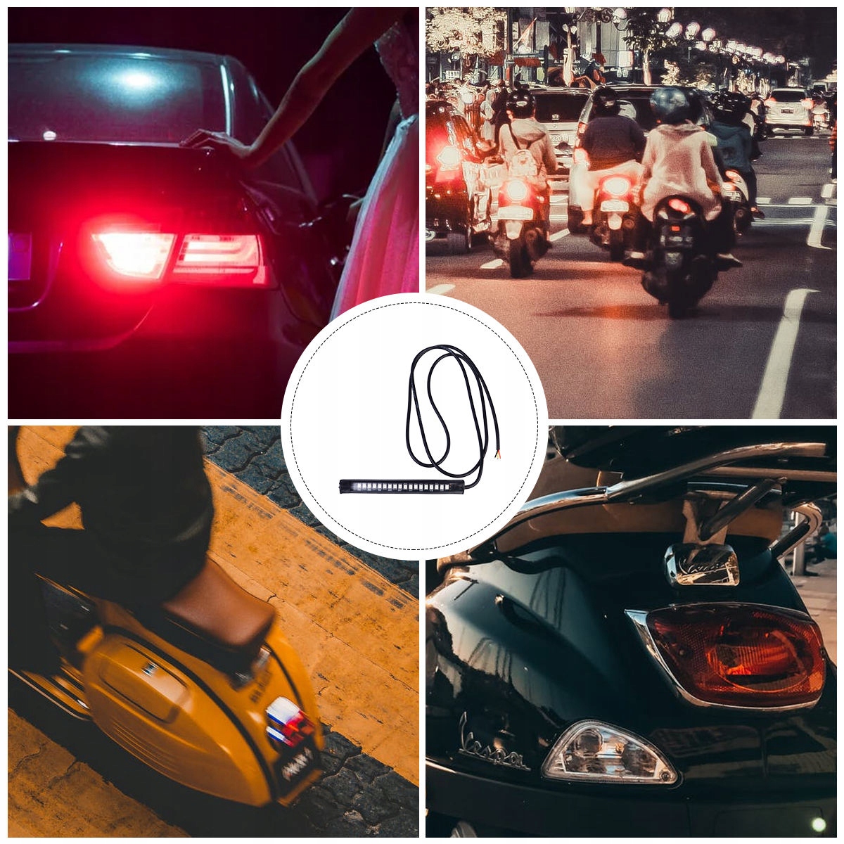 ✅ten Объект представляет собой мотоцикл Гибкий световой ремень может использоваться в качестве задних световых света и комбинации индикаторов направления. Интегрированное рулевое управление с тормозами. Повысить безопасность вождения. Черный кабель соединяет отрицательный полюс, тормозный свет, желтый кабель соединяет индикатор направления.