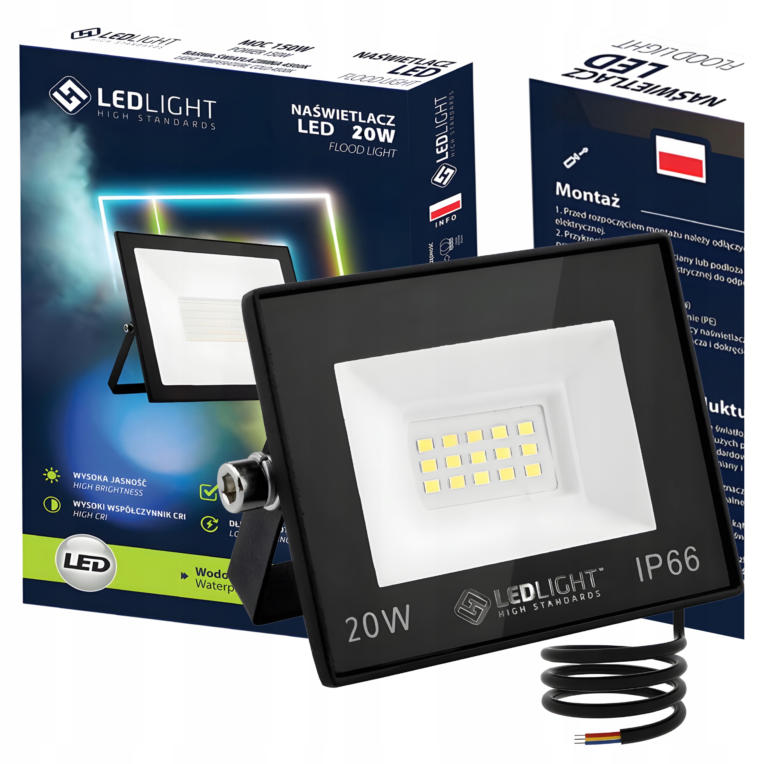 ✅ Высокая мощность 20 Вт обеспечивает яркое и эффективное освещение, что делает его идеальным для использования во дворе, мастерской или строительной площадке.