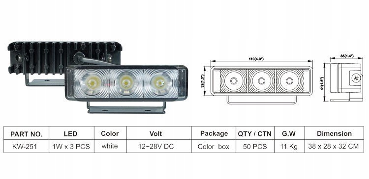 Галоген-светодиодная лампа распознавание 12 В 24 В (код: LAMP 3 Светодиодный реверсирование KW-251, ID: 418)