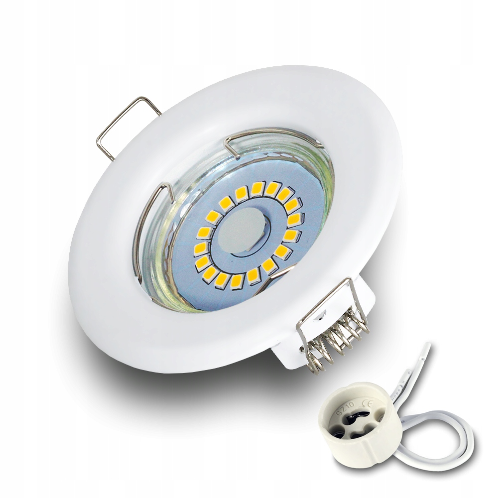 НАБОР ОСВЕЩЕНИЯ: БЕЛЫЙ встраиваемый светильник, лампочка PREMIUM SMD LED GU10 5W 3000K GLASS, патрон GU10.