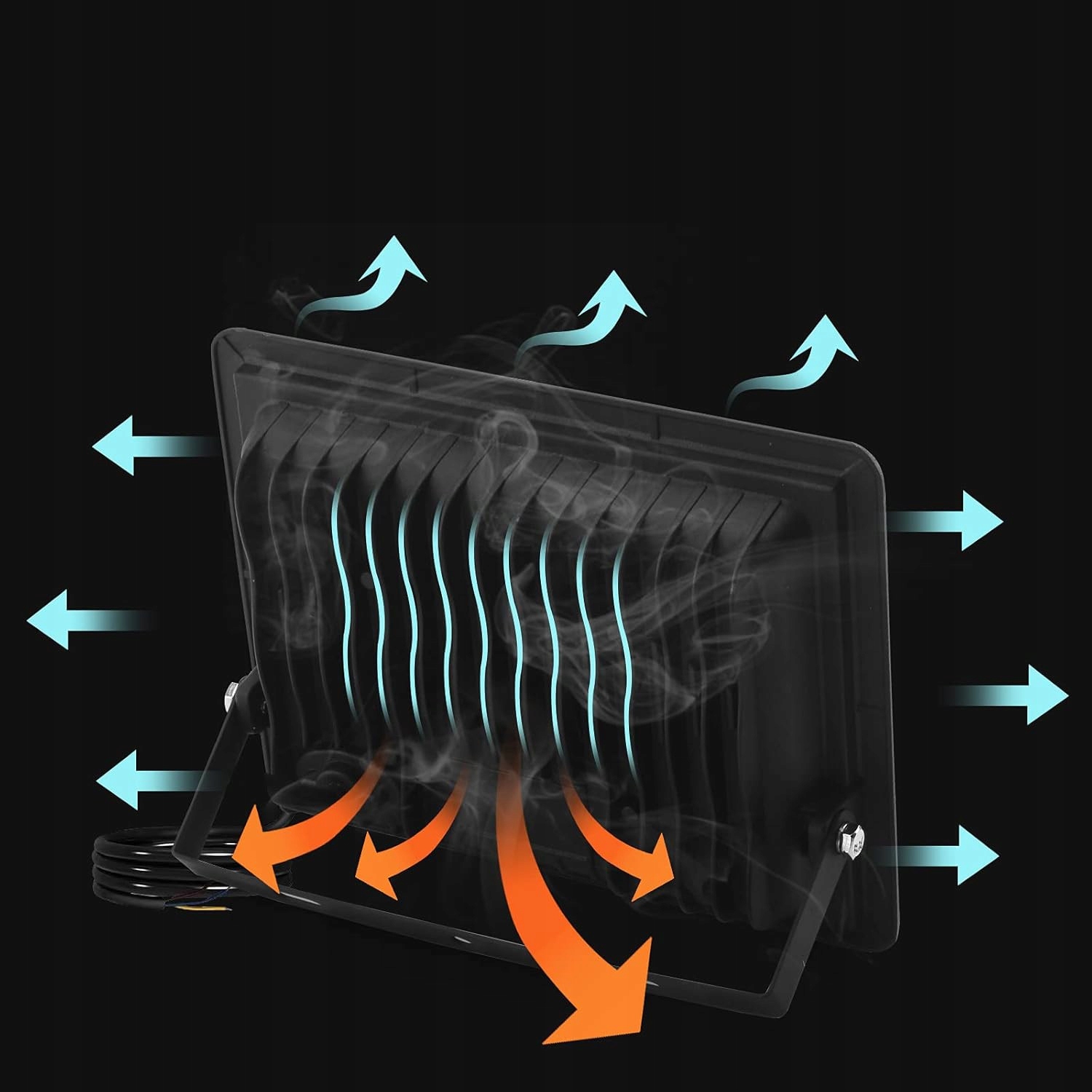 Задняя часть прожектора спроектирована так, чтобы еще лучше рассеивать тепло. Это положительно влияет на срок службы светодиодов и долговечность устройства.