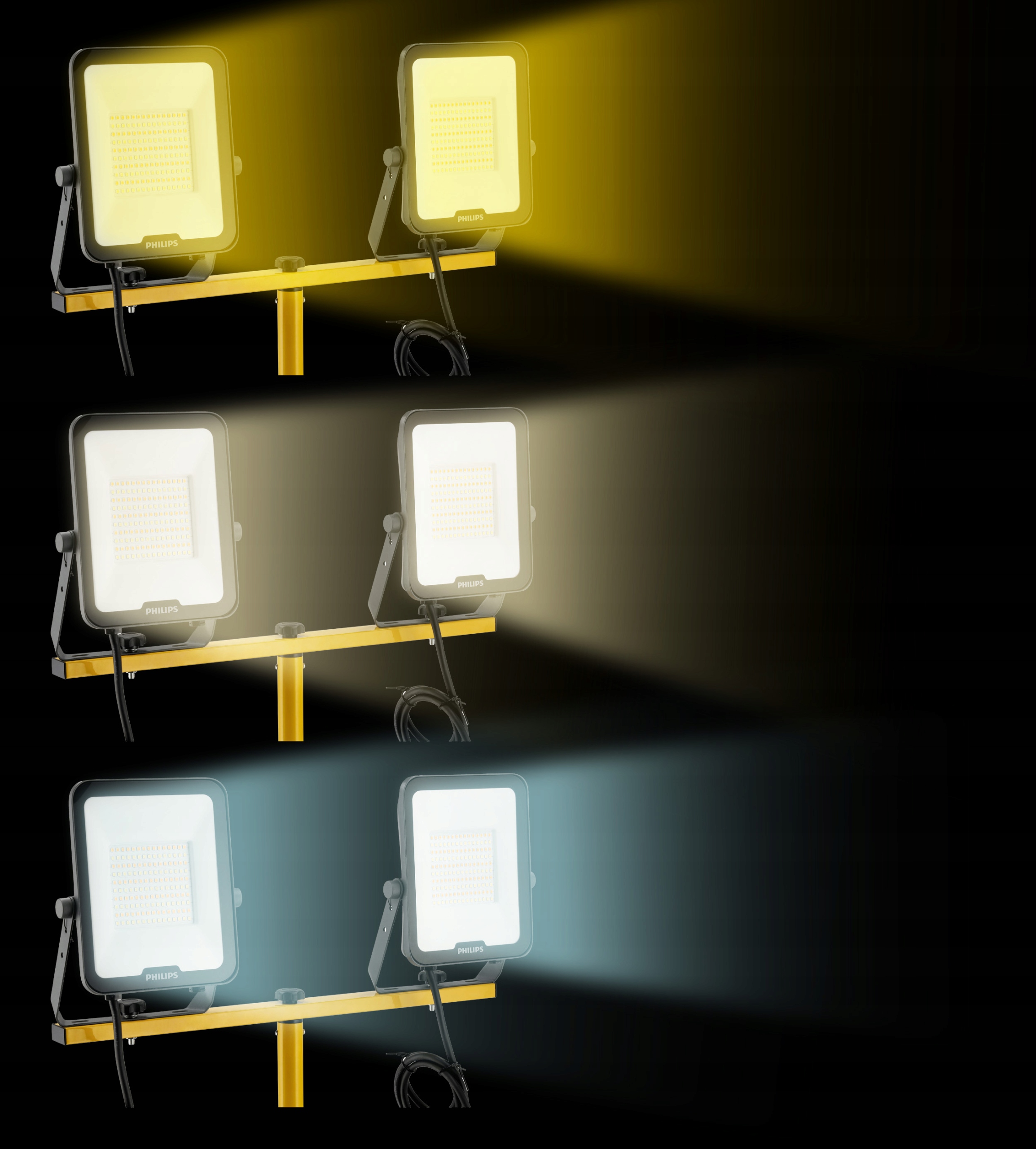 - Светодиодный прожектор Philips оснащен переключателем на задней панели, который позволяет легко изменять цветовую температуру. Благодаря этому вы можете легко настроить освещение под свои текущие потребности и предпочтения, выбрав один из трех доступных вариантов: 3000 К (теплый свет), 4000 К (естественный свет) и 6500 К (холодный свет).