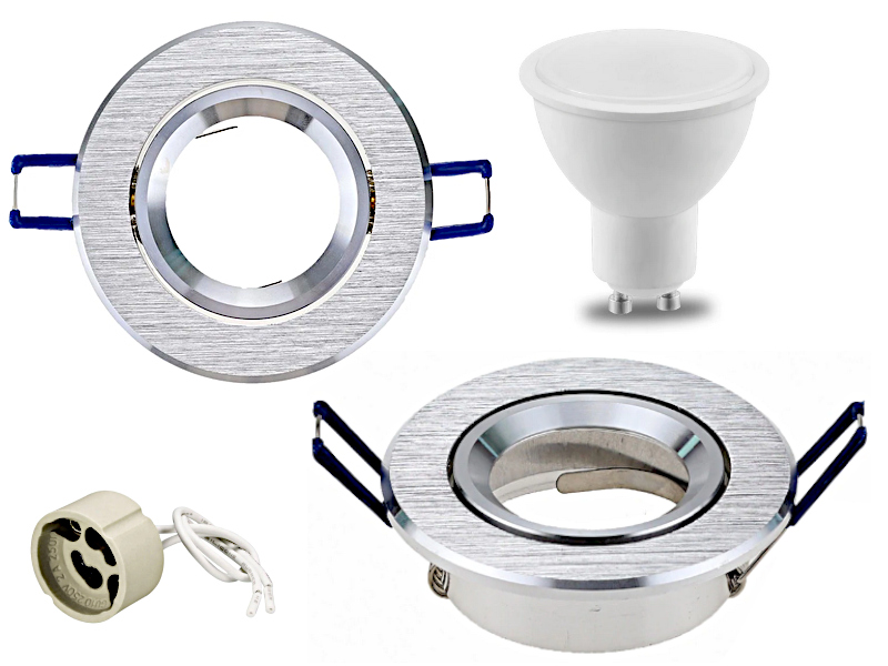 Алюминиевый потолочный светильник с рваной структурой, тип Aluminium INOX, с регулируемым углом света, в комплекте с лампочкой 6,5 Вт и цоколем GU10 - готов к установке!