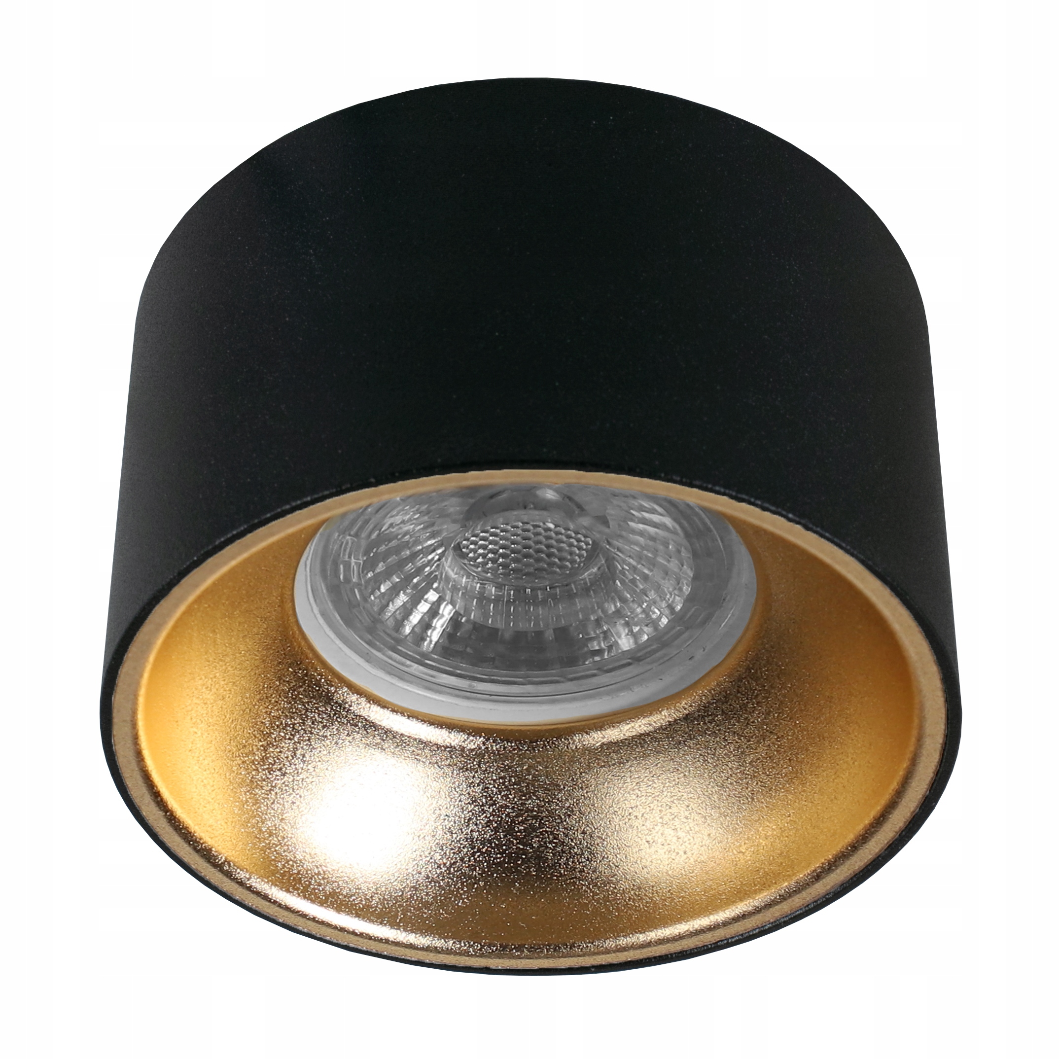 Потолочный точечный светильник, предназначенный для ламп GU10. Изготовлен из алюминия, окрашенного в черный матовый цвет с золотым центром. Светильник последней серии отличается высоким качеством изготовления и детализацией. Мягкие края и изогнутые линии придают обстановке элегантность и утонченность. Они идеально вписываются в жилые и коммерческие интерьеры, такие как магазины, офисы, галереи.