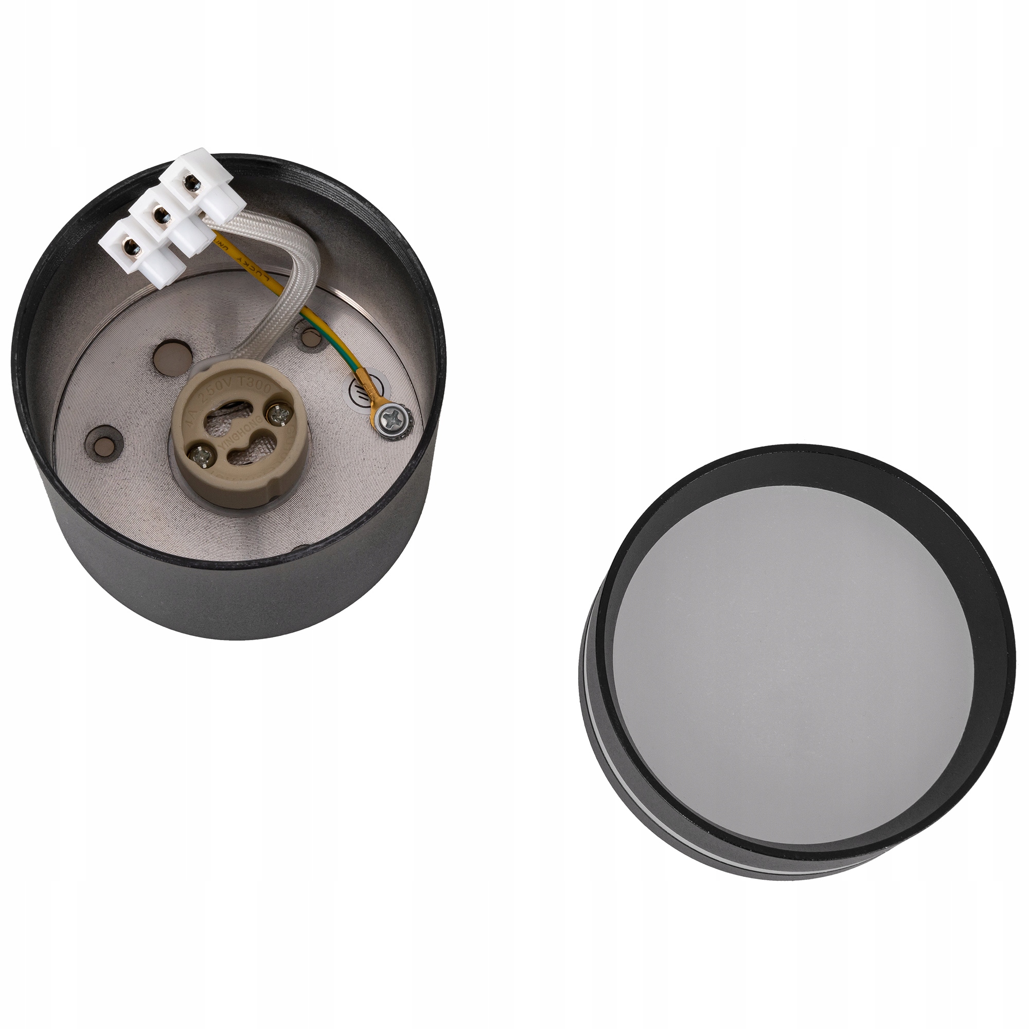 Просто прикрутите основание с розеткой GU10 к потолку, а затем прикрутите к нему остальную часть светильника.