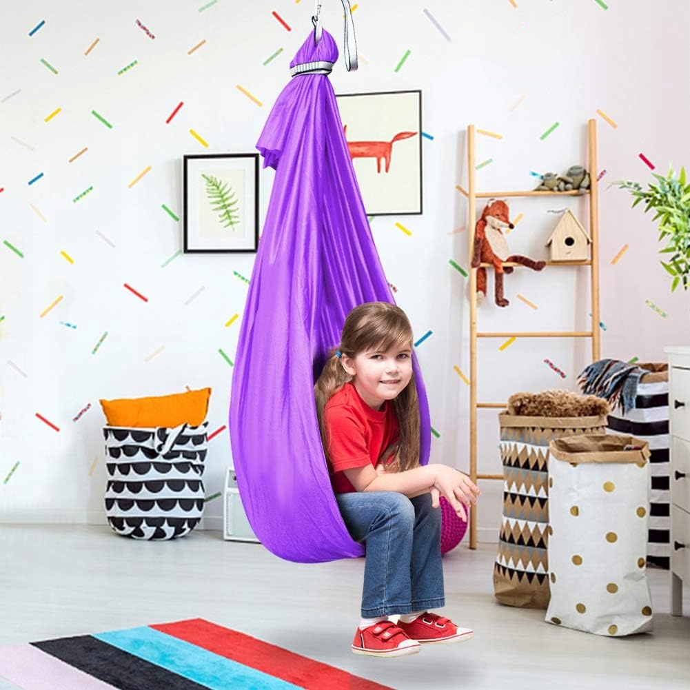 【Подарки для детей с особыми потребностями】 Терапевтические качели в помещении имитируют ощущение, когда вас крепко обнимают или укутывают в кокон, и специально разработаны для детей с проблемами сенсорной стимуляции. Ткань для уличной терапии для детей стимулирует кожу, тело и разум во время раскачивания, лежания, сидения, чтения и даже стоя - идеально подходит в качестве подарка для детей, мальчиков и девочек с аутизмом, ШРЛ, СДВГ и синдромом Аспергера.