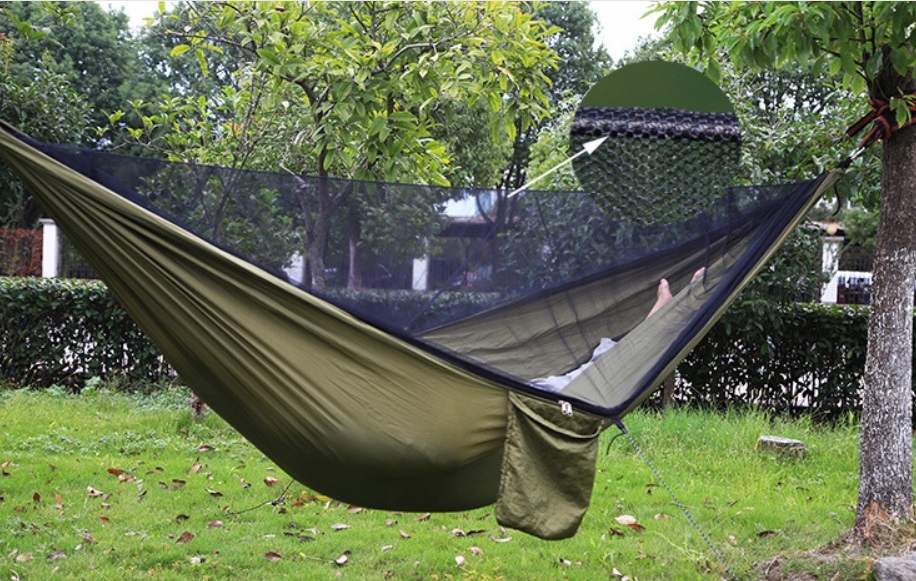 - москитная сетка обеспечивает хорошую защиту от комаров и других насекомых. С одной стороны он неразъемно пришит к гамаку, а с другой имеет молнию.
