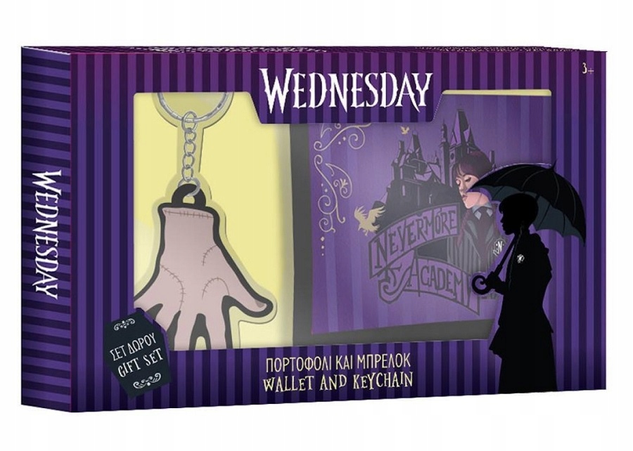 Существует один отсек для банкнот, небольшой карман для монет и два боковых кармана (включая один прозрачный), например, для карт. Набор включает в себя декоративное кольцо