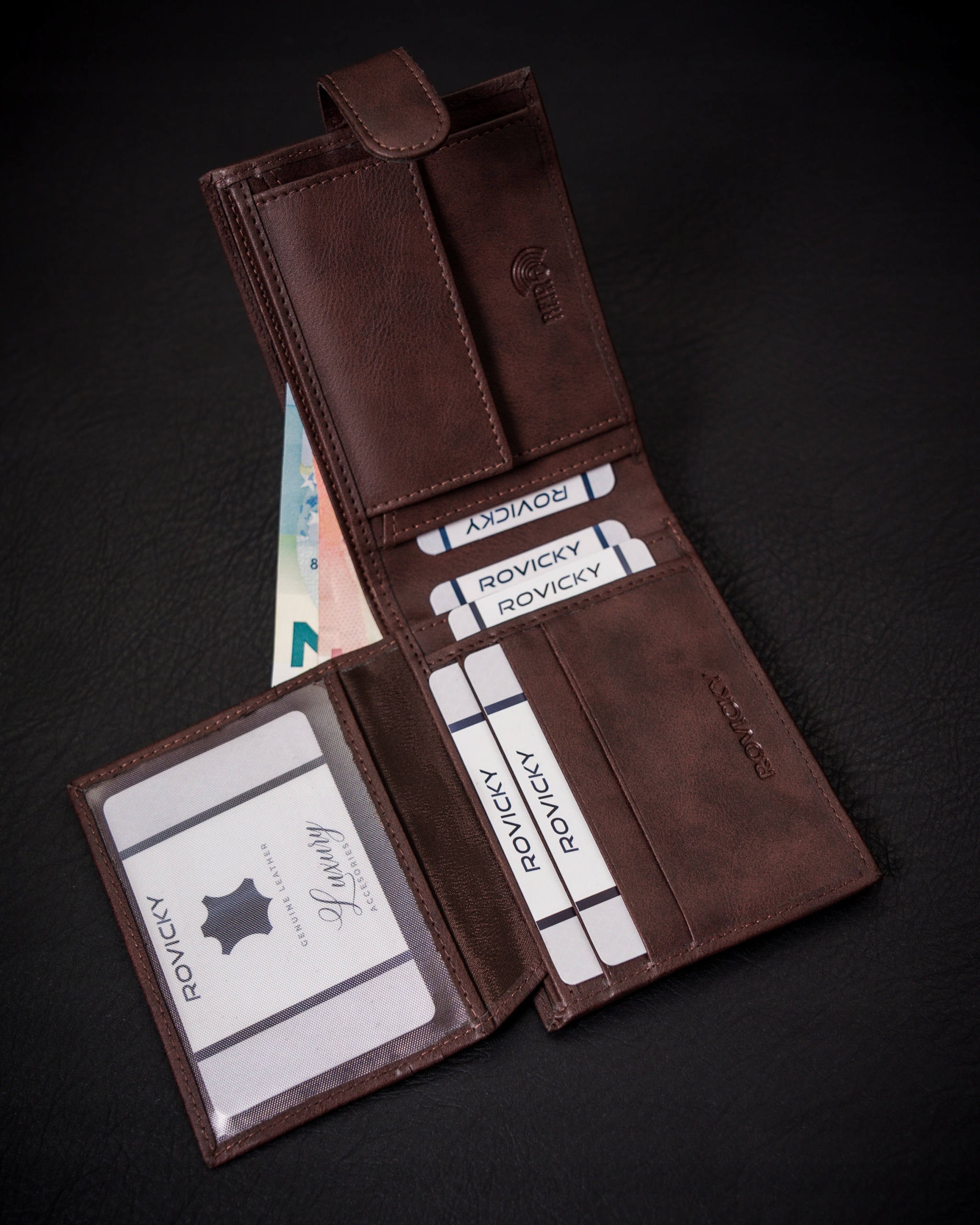 RFID означает метод, использующий радиоволны для передачи данных. Используется в технологии бесконтактного использования банковской карты. Кошельки с RFID-защитой имеют внутри специальный материал, защищающий банковские карты от атак со стороны RFID-считывателей. Как это работает? Когда ваш кошелек находится в кармане брюк, куртки и т. д., кто-то может поднести сканер кода близко к карману и отсканировать данные с карты. Если у вас есть карта в кошельке с RFID-защитой, сканер не будет работать. Ваши карты/деньги в безопасности!