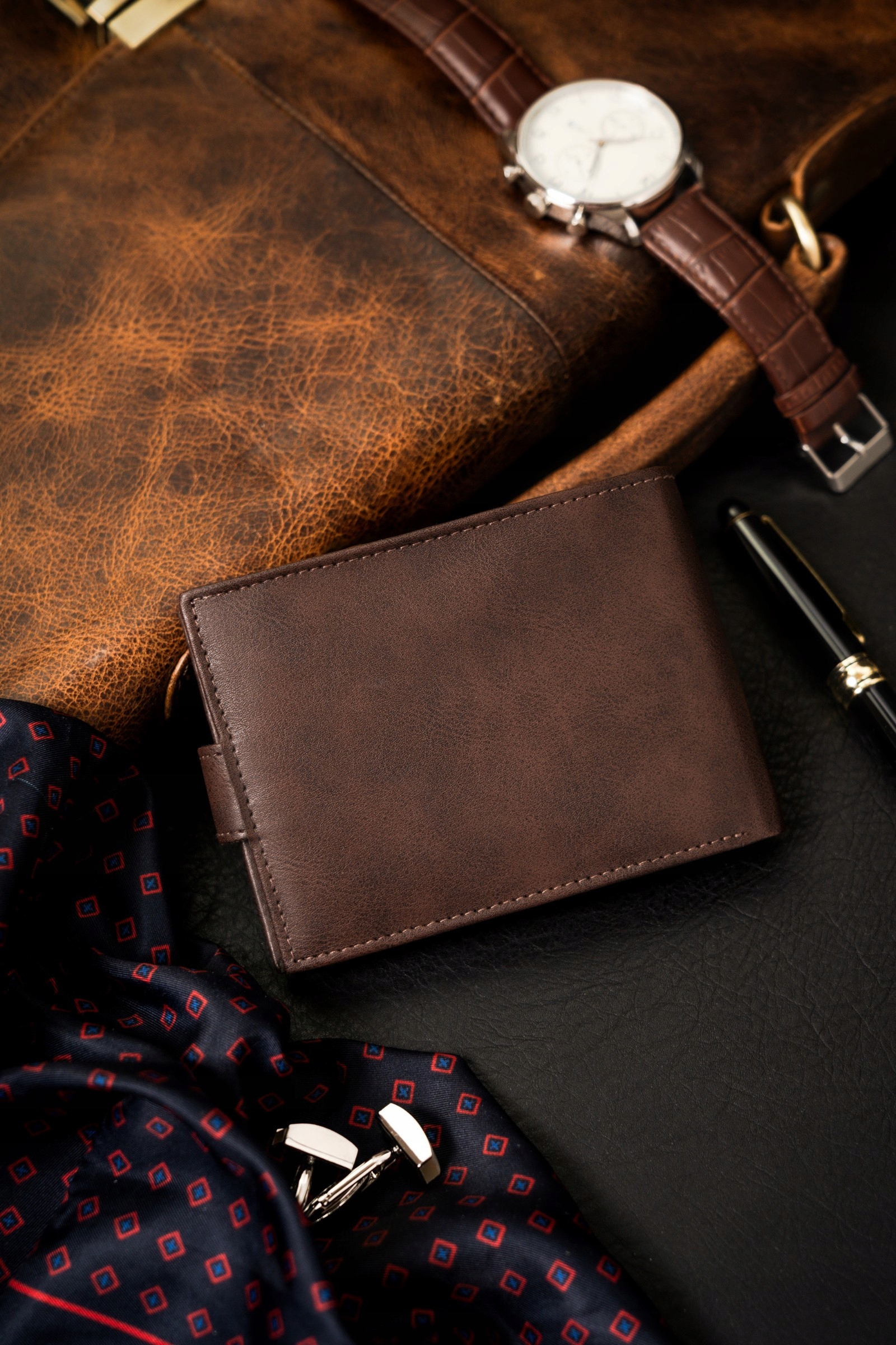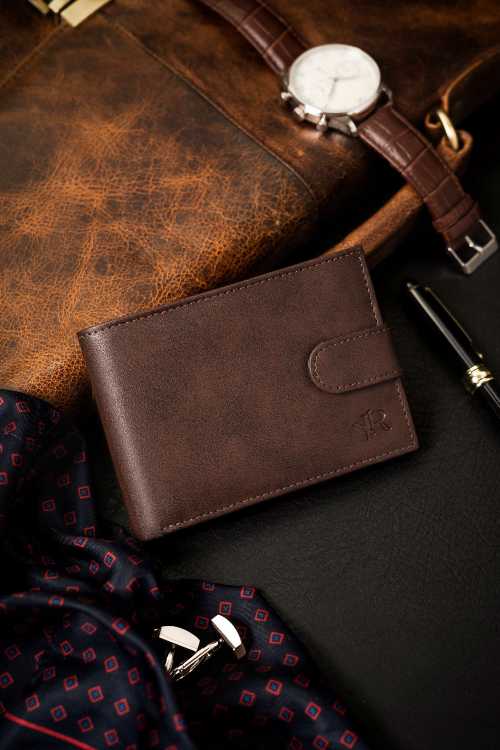 Первый элемент набора — стильный кошелек среднего размера классического дизайна. Кошелек среднего размера чрезвычайно практичен для повседневного использования, поскольку не занимает много места в кармане, сумке или рюкзаке. Кошелек имеет удобную застежку-кнопку, внутри большое количество отделений.