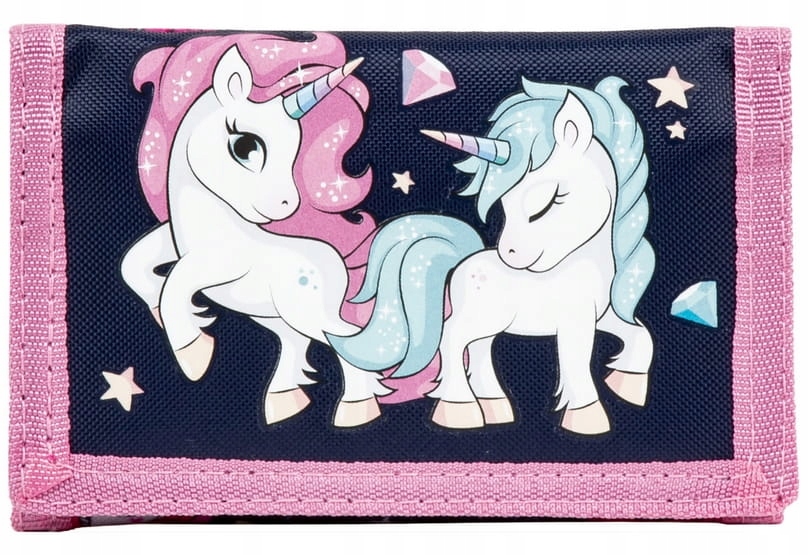 Тщательно продуманный кошелек с застежкой-липучкой и милым мотивом единорога.