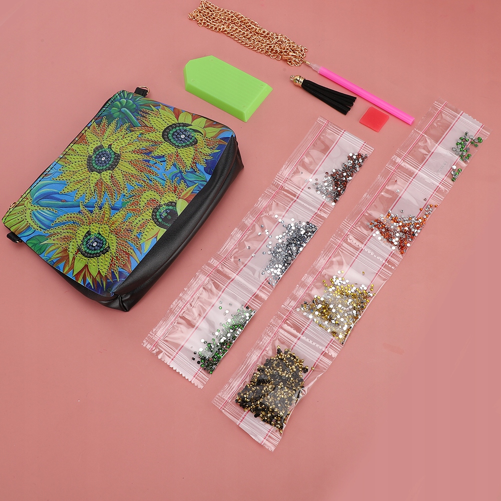 Кошелек с алмазной росписью черный из искусственной кожи с узором подсолнуха DF
