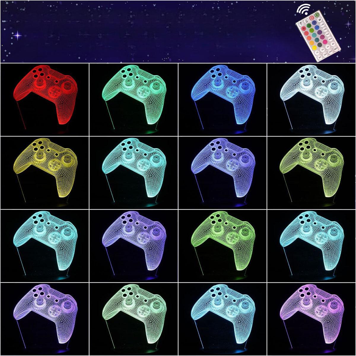 💫💫💫Детский ночник, игровая светодиодная 3D-лампа, 16 цветов, изменение цвета с помощью пульта дистанционного управления, комнатный ночник с геймпадом, подарок на день рождения или Рождество для любителей игр, детей, мальчиков и мужчин💫💫💫