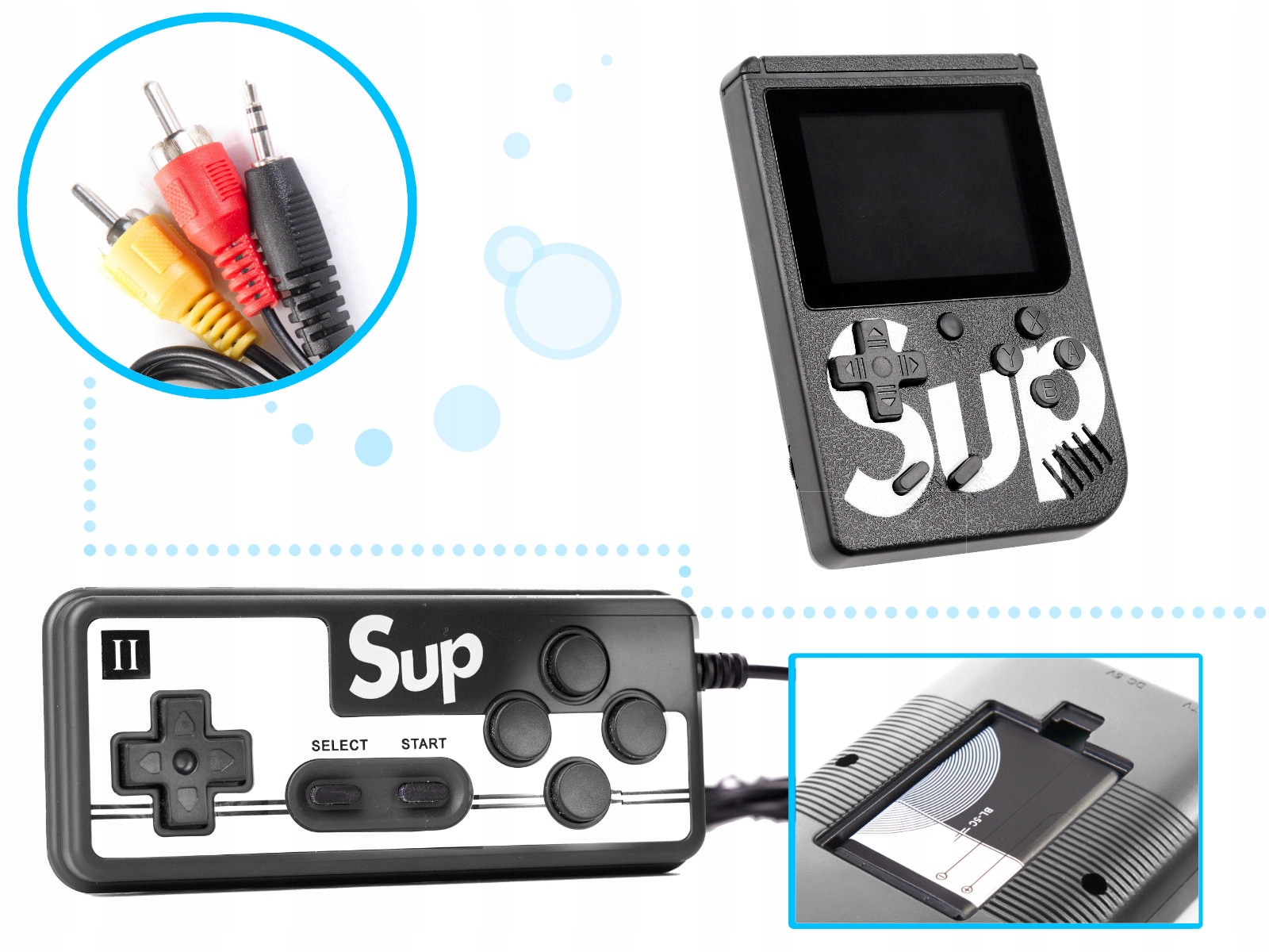 GAMEBOY MINI CONSOLE 400 GAME RETRO PORTABLE MARI + 3,5 мм до 3 RCA AV A / V TV, аудіо-відео кабель до