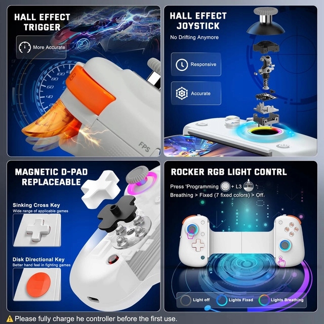Информация: h1> - Беспроводной контроллер с отзывчивыми аналоговыми тропами, джойстик с эффектом зала, кликируемыми пальцами большого пальца, турбо, двойными вибрациями, 6-Sthro, 2 программируемым макросом и функцией замены ключевых значений Abxy для получения окончательного опыта в мобильных играх. (Вибрация и 6-осевой гироскоп поддерживаются только на ПК/PS3/PS4/Switch)