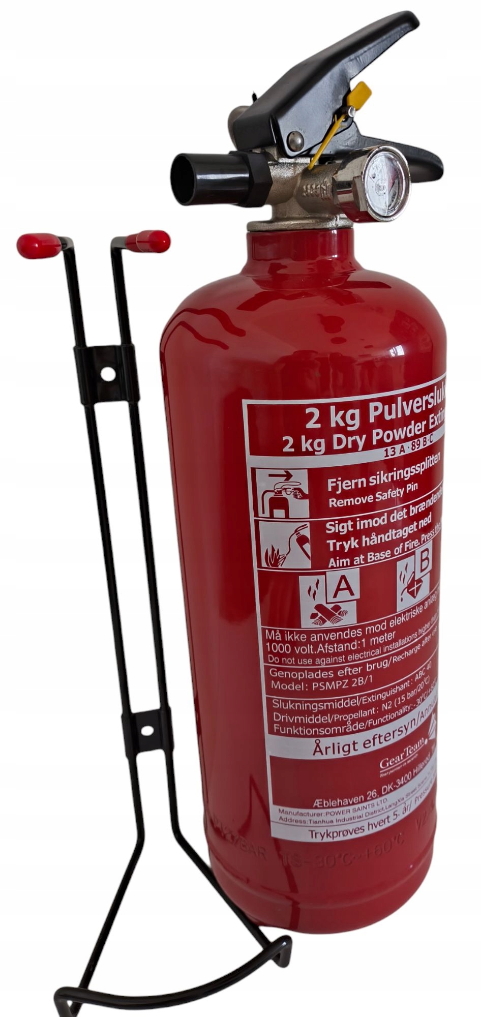 Gaśnica proszkowa ABC 2kg Z manometrem samochodowa solidny metalowy wieszak
