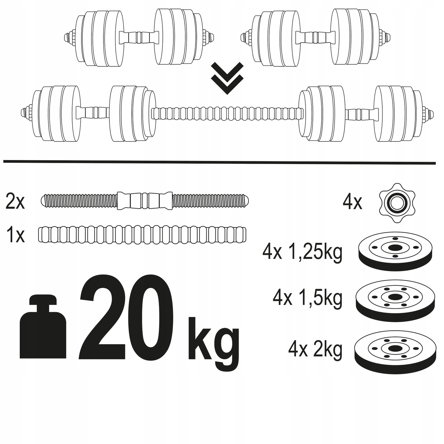 - Вес всего комплекта: 20 кг