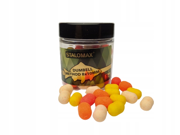 Гантели Stalomax Способ 8х10 мм. Упаковка: 75 мл. Шарики в контейнере в миксе цветов, благодаря чему мы получаем гантели одного аромата, но в нескольких цветовых вариантах. Среди прочего мы найдем следующие красочные гантели: красные, оранжевые, желтые и белые.