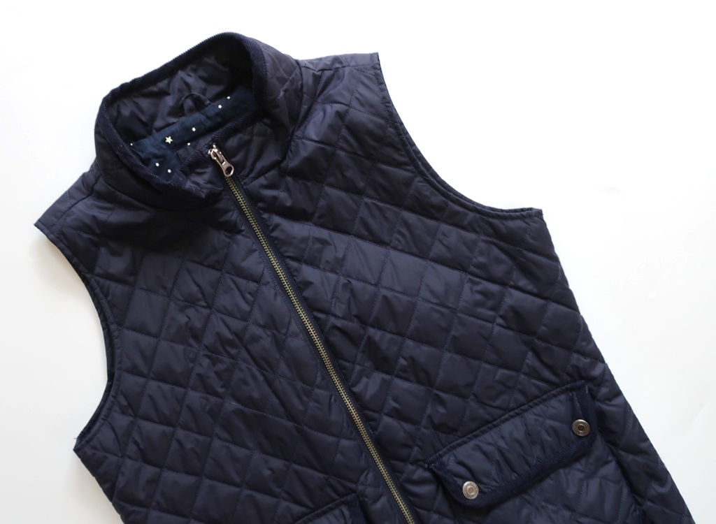 СТЕГАНЫЙ ЖИЛЕТ ОТ GAP – ТЕМНО-СИНИЙ НА ХЛОПКОВОЙ ПОДКЛАДКЕ ,