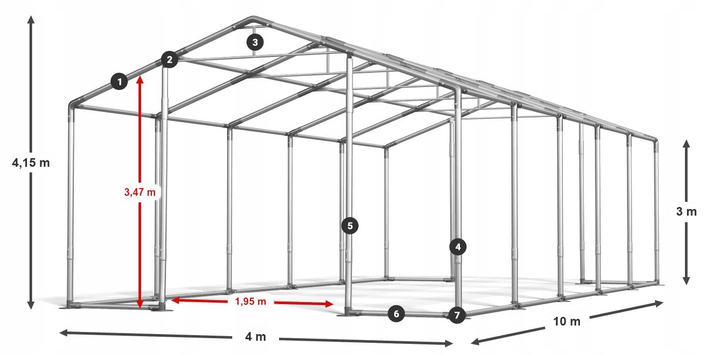 1 - Структурные трубы диаметром около 50 мм 2 - Конструктивные соединители диаметром около 54 мм 3 — Усиленная конструкция крыши 4 — Прочные двойные винты сквозные 5 — Подкрепления записи 6 - Усиленная конструкция пола 7 - Увеличенные ножки шириной 14 см