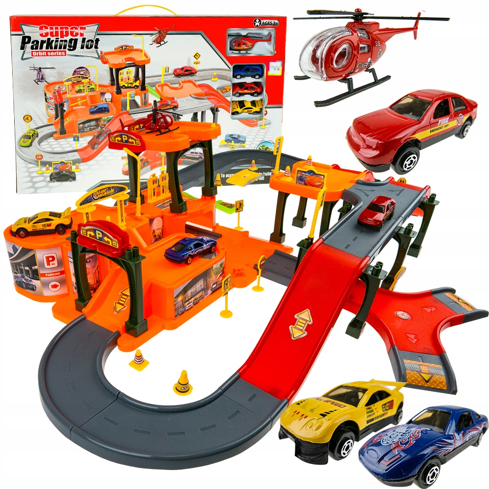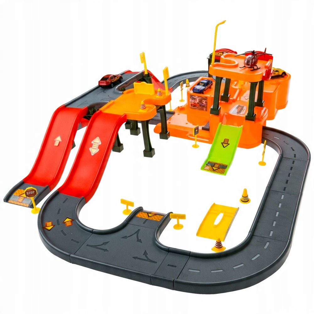 Гараж/Стоянка з трасою для автомобілів.Автомобілі.Гелікоптер