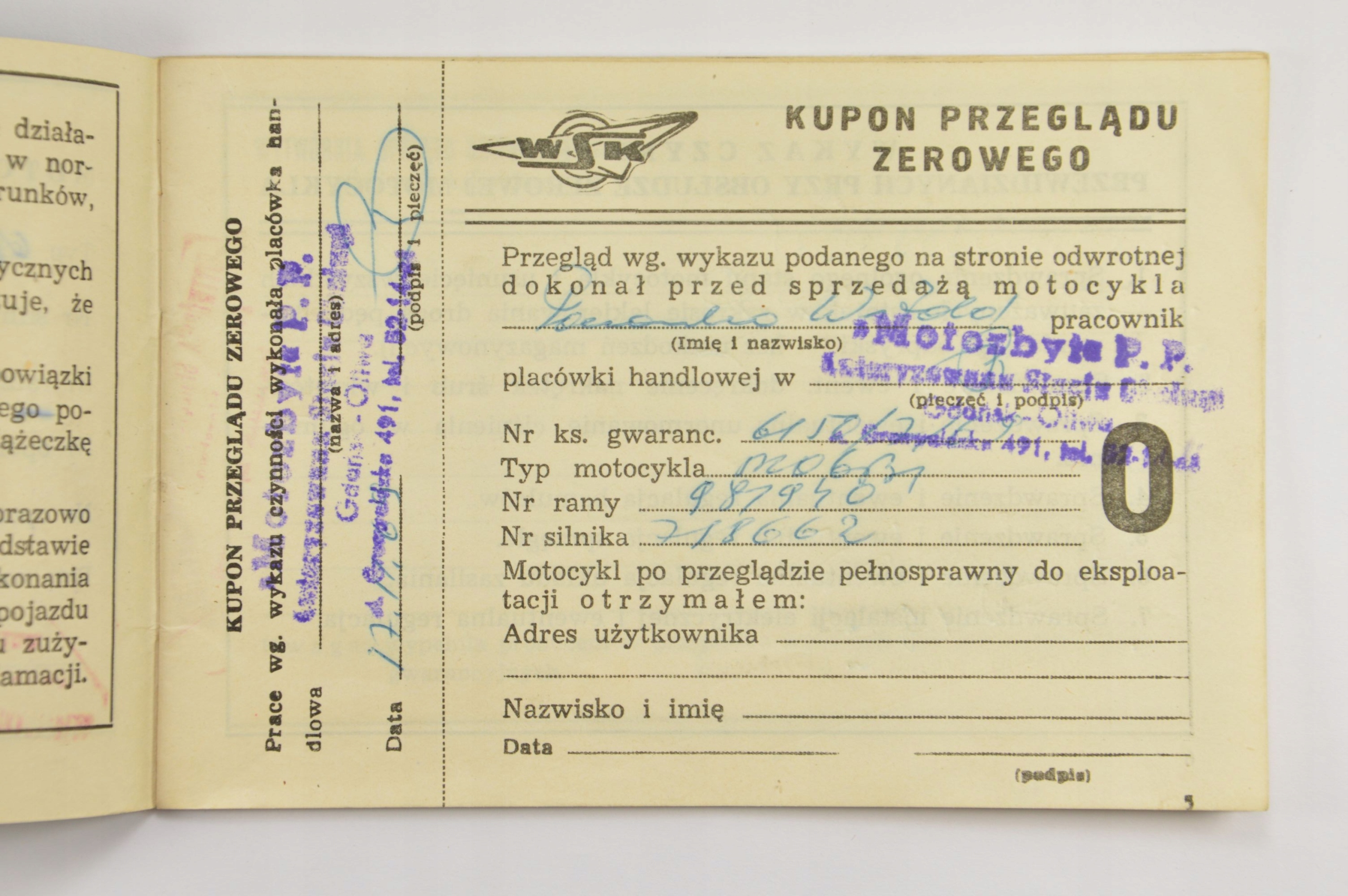ГАРАНТИЙНАЯ КНИГА НА МОТОЦИК WSK 125 1970 ГОДА