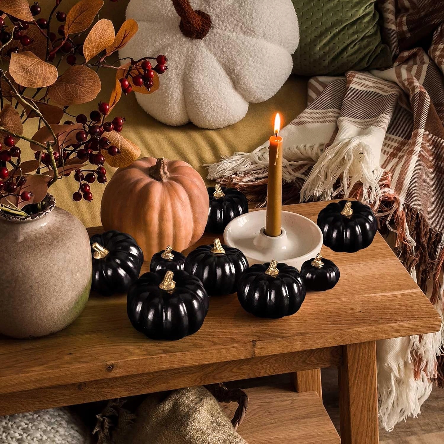 Тыквы набор из 12 штук черных мини -осенних тыкв для украшения Хэллоуина