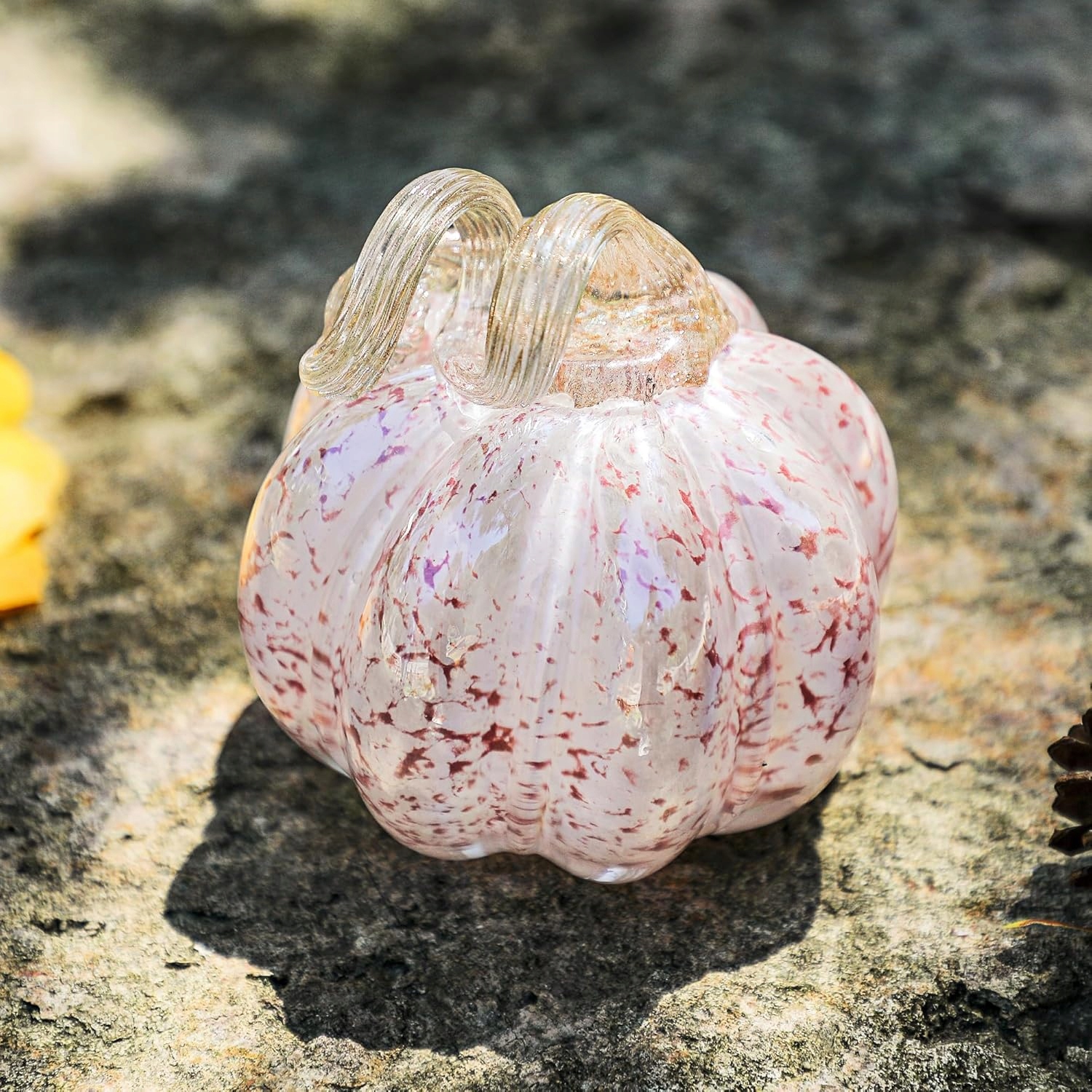 HDCRYSTALGIFTS - тыквы из дутого стекла 11 см, ручная работа, осенний урожай, украшение на Хэллоуин, День Благодарения (розовый)