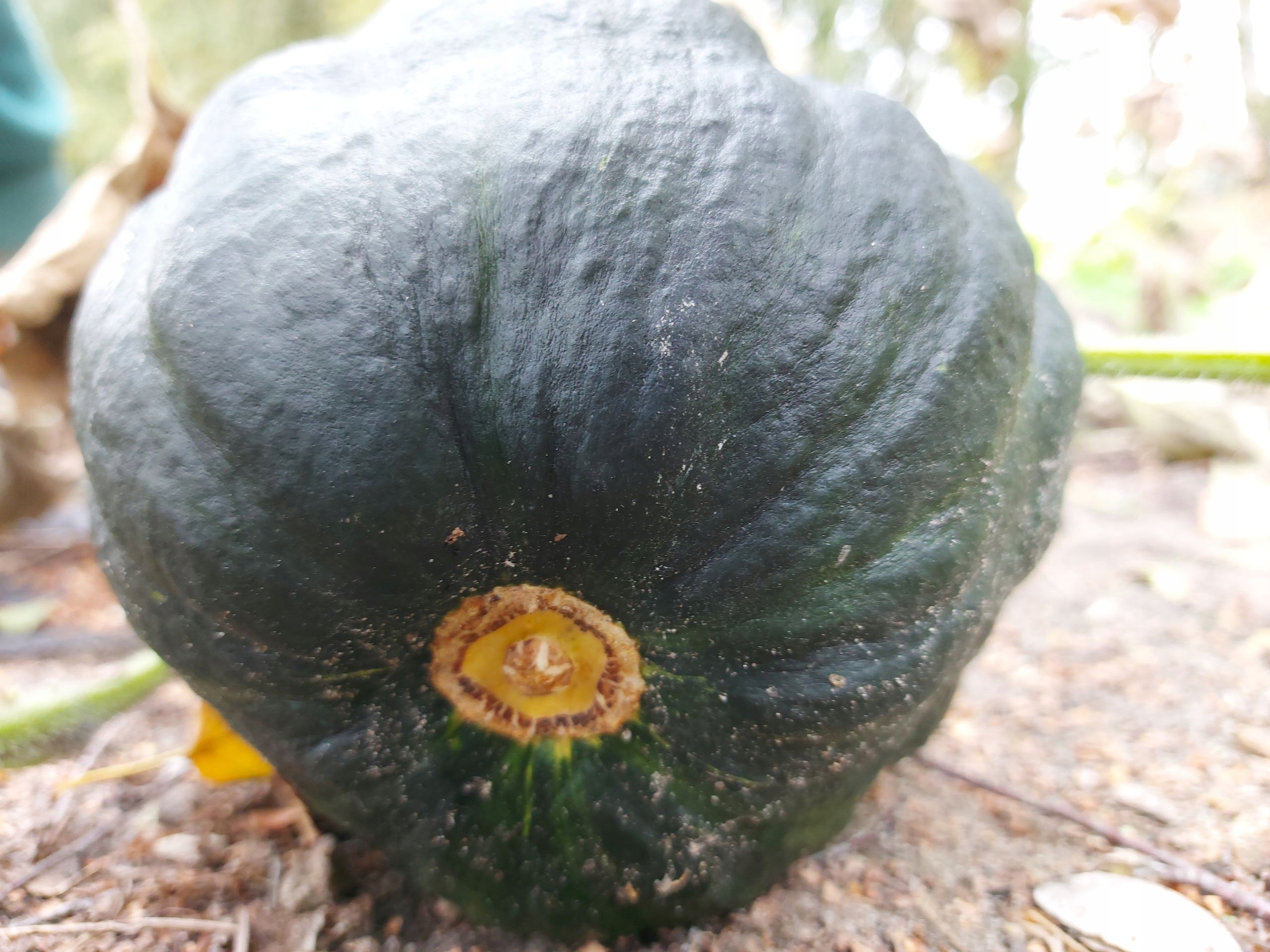 Черные традиционные тыквы Семена Кожа имеет глубокий темно -зеленый цвет, когда она молода, постепенно проходя в , блестящий черный и Terracotta , когда она созревает.