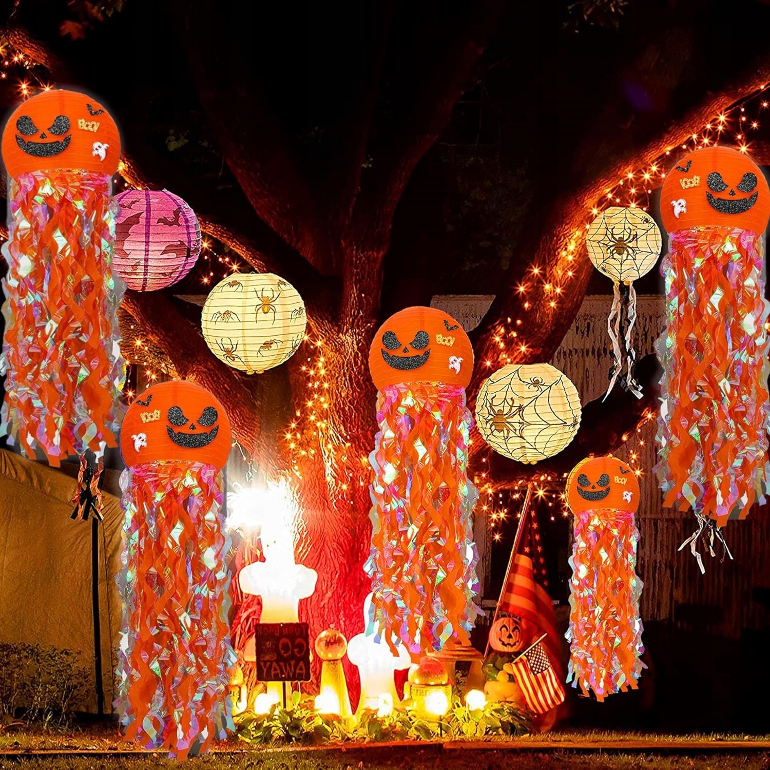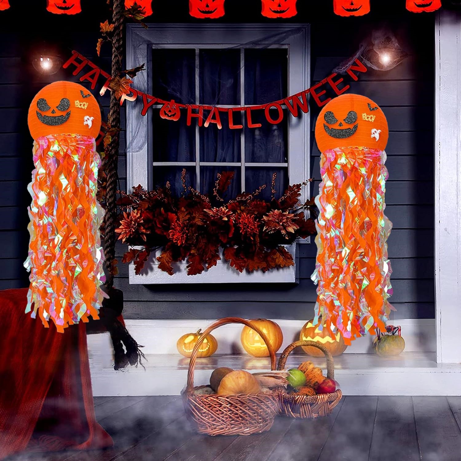 ГАРБУЗОВИЙ ЛІХТИР ВИСЯЧИЙ ПАПЕРОВИЙ АБАНЮР ДЕКОРАЦІЯ НА ХЕЛОВІН 28 СМ