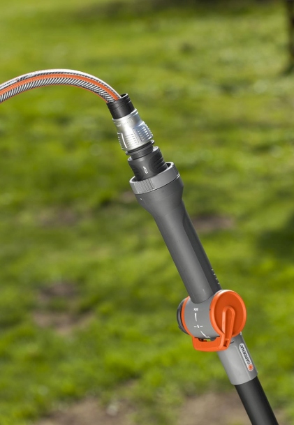 - Для замены аксессуаров больше не требуется поездка к крану. Поток воды прекращается при отсоединении форсунки, распылителя или распылительной трубки и восстанавливается при повторном подсоединении аксессуаров к шлангу.