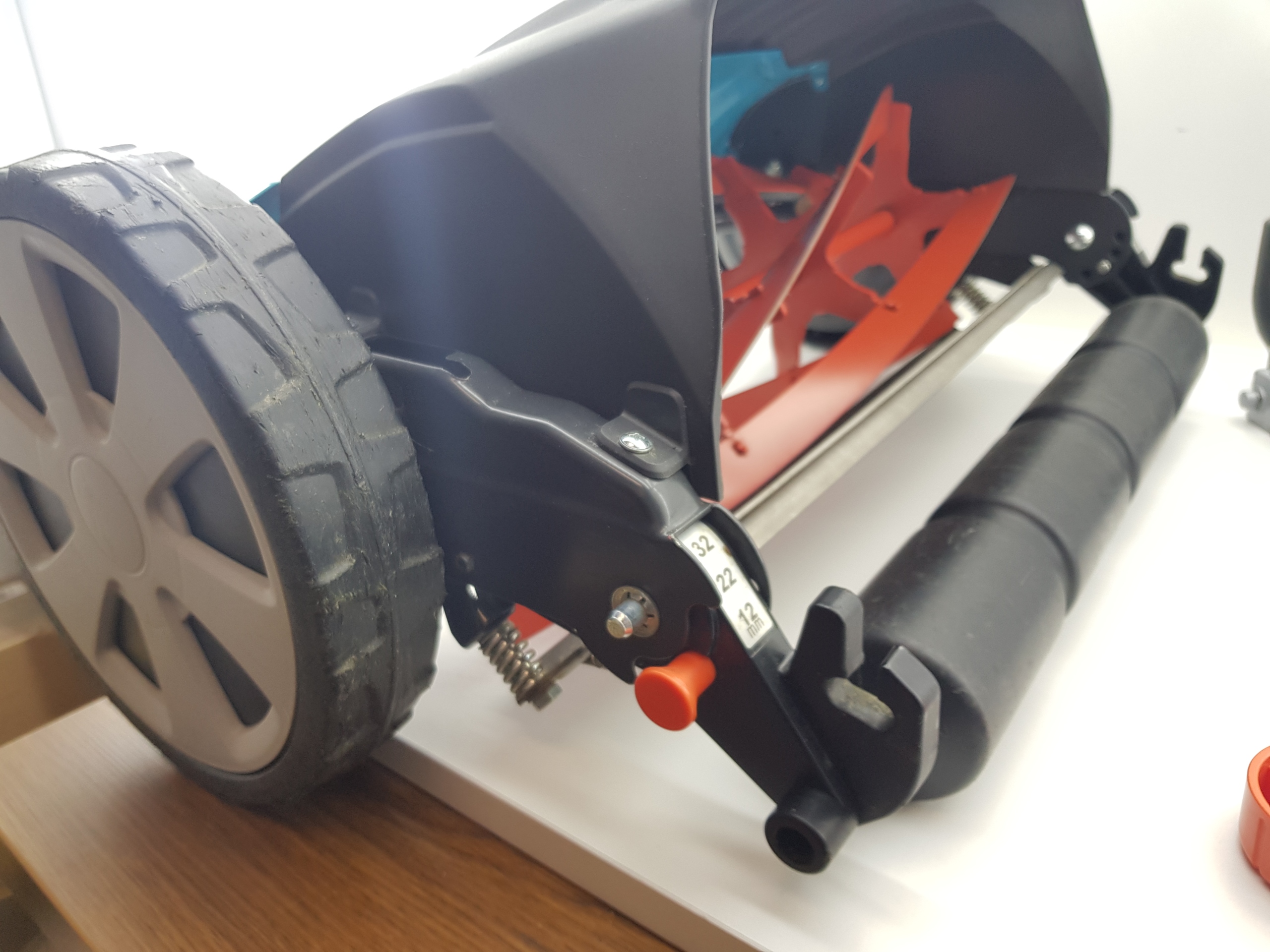 - Особенности: барабан из закаленной стали, ширина барабана 40 см, высота среза регулируется от 12 до 42 мм, рекомендуется для площадей до 250 м2, легкая и тихая работа, можно сложить для экономии места, легко чистить.