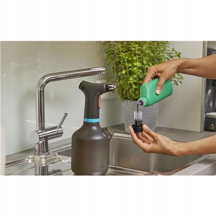 Опрыскиватель EasyPump 1 л позволяет опрыскивать цветы и другие растения в дом и сад становятся проще, чем когда-либо прежде. Благодаря питанию от аккумулятора опрыскивать растения практически не составляет труда — достаточно слегка нажать на спусковой крючок. Это не только повышает комфорт использования, но и является решением для людей, для которых постоянное сцеживание слишком сложно. Дополнительное отверстие в контейнере для воды еще больше упрощает использование опрыскивателя. Это отверстие с дозирующей крышкой позволяет объединить 3 функции в 1. Через него можно наполнить опрыскиватель водой, отмерить и добавить средство защиты растений или удобрения, а также опорожнить контейнер. Больше нет необходимости откручивать головку насоса. При поливе растений функция 360° предотвращает засасывание воздуха. Благодаря этому опрыскиватель работает равномерно и имеет большую дальность действия, даже если установить его под углом. Используя регулируемую высококачественную латунную насадку, вы можете выбрать точечную или распыляемую струю, в зависимости от потребностей ваших растений. Еще одним удобством является прозрачный материал опрыскивателя EasyPump 1 л, благодаря которому пользователь может видеть уровень воды в баке.