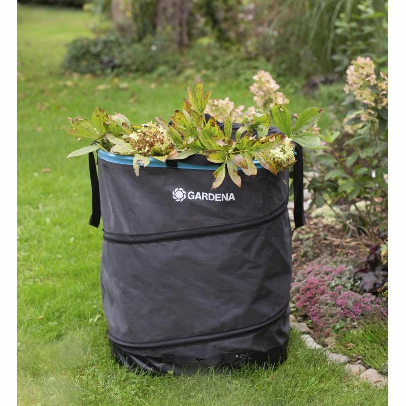 Прочный и компактный складной садовый мешок для мусора GARDENA PopUp, размер M — идеальный контейнер для мусора для легкой и приятной работы в саду.