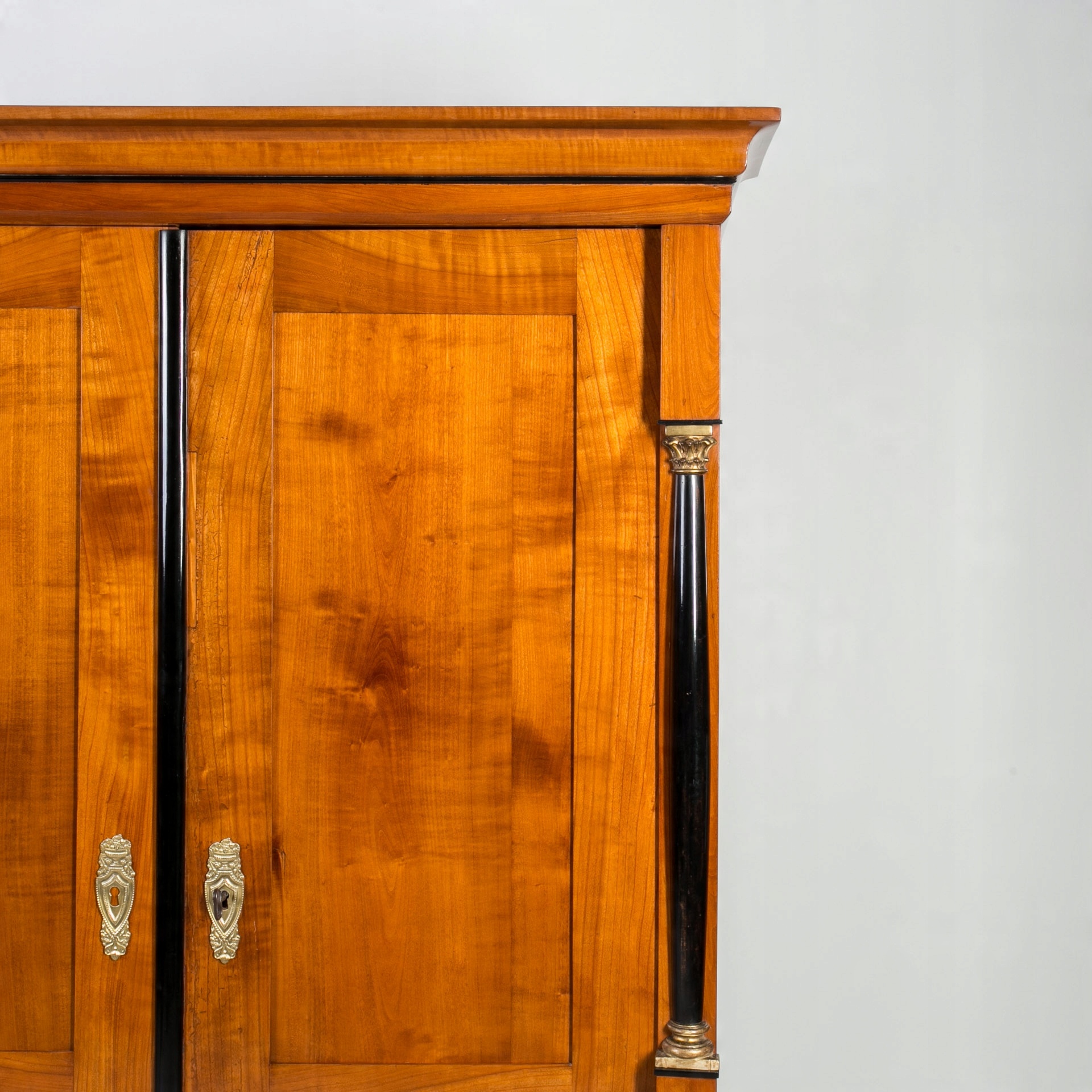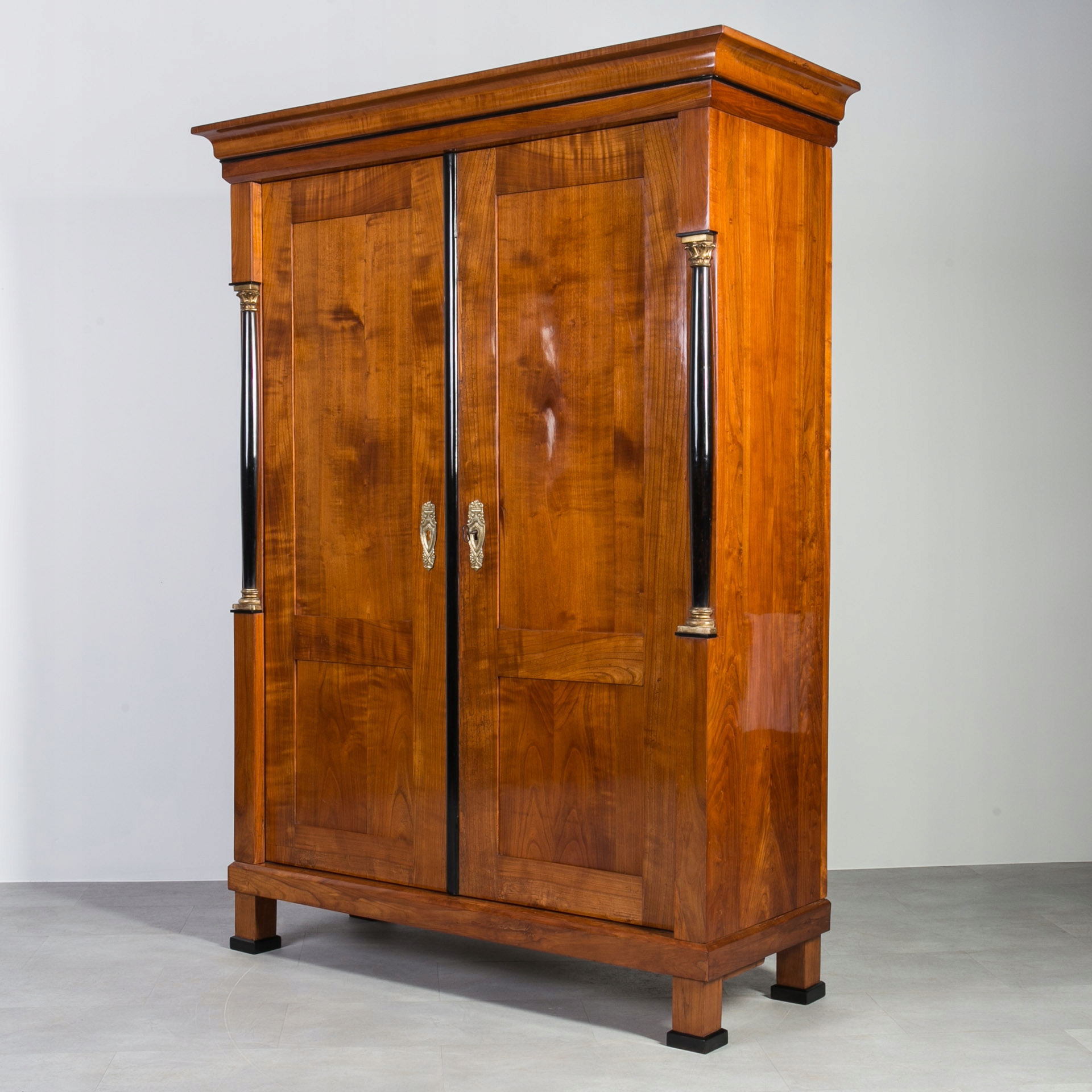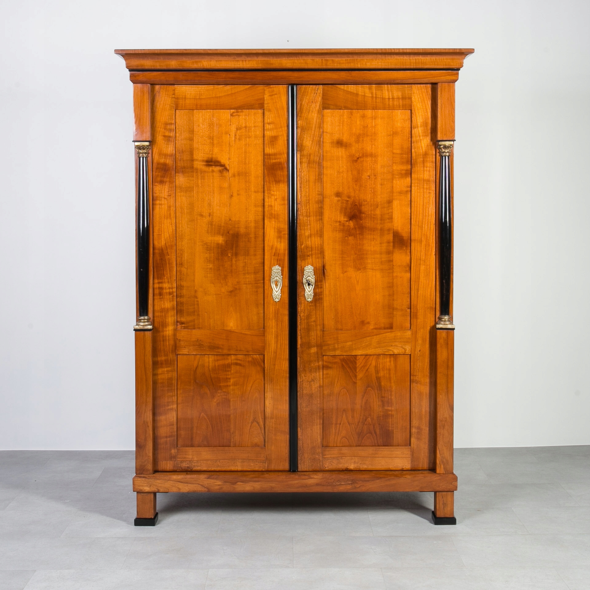 Biedermeier гардероб вишневого дерева с эбонизированными колоннами