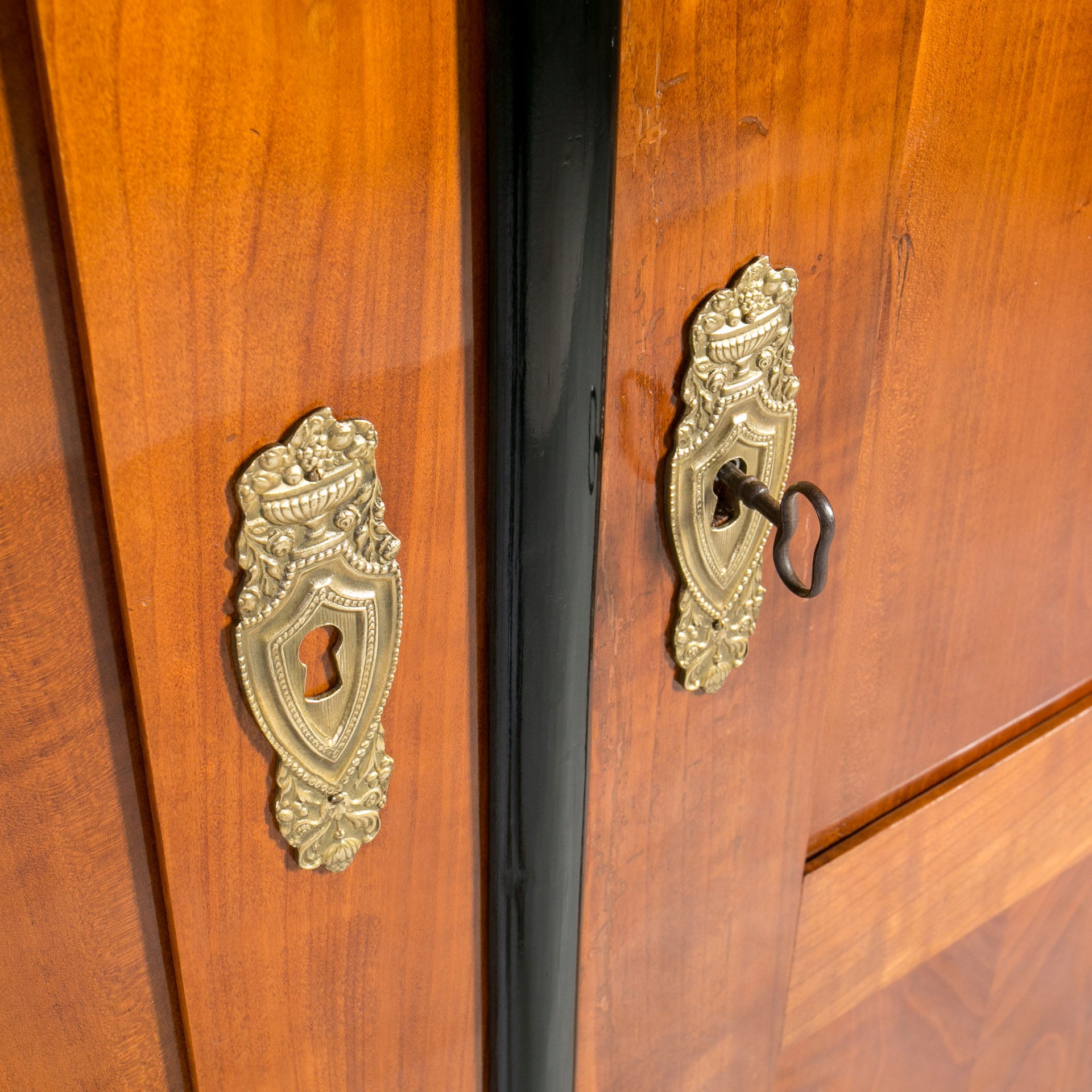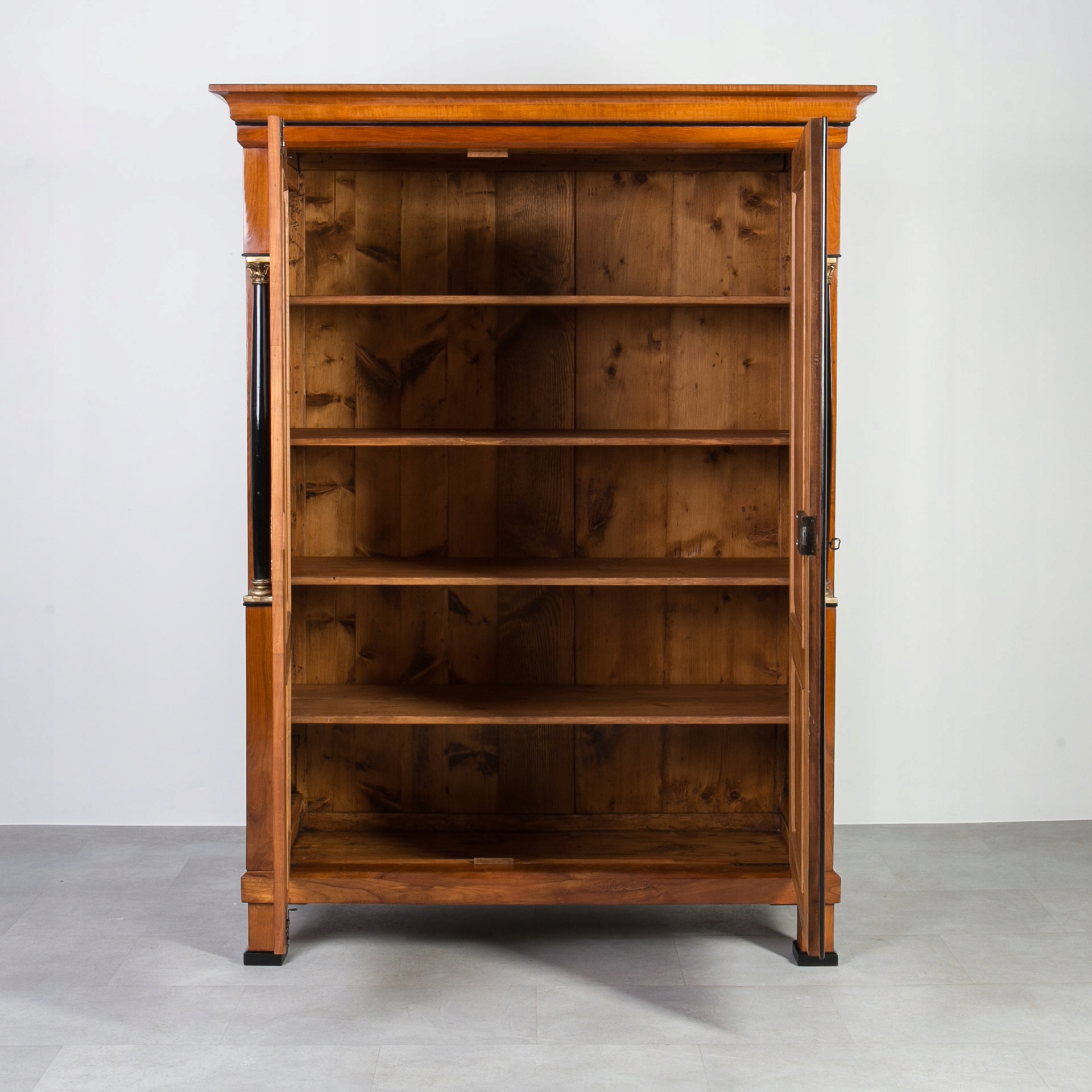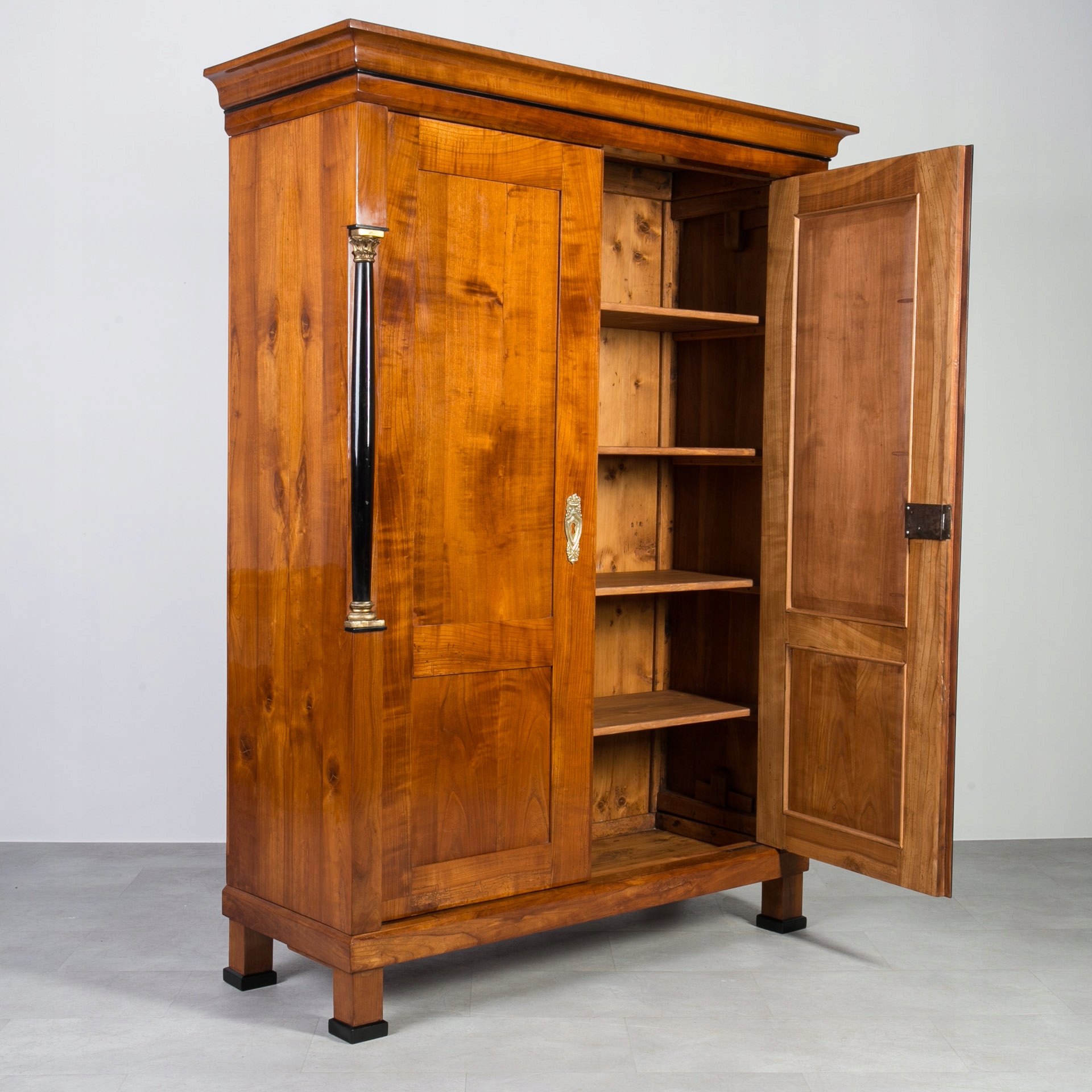 Biedermeier гардероб вишневого дерева с эбонизированными колоннами