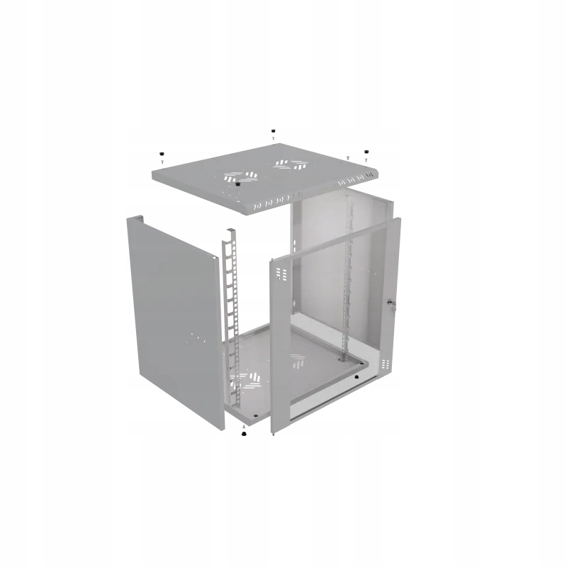 Гардероб может быть легко облажается с помощью выводов расширения (они не включены) благодаря отверстиям в задней части. Гардеб допускает четырехточечную установку на стену, что увеличивает его стабильность. Дверь может быть установлена как справа, так и влево, и благодаря специальным петлям с пружиной их установка и разборка чрезвычайно просты. Рельсы на стойках могут быть установлены на трех глубинах, что позволяет свободно соответствовать устройствам внутри. В верхних и нижних частях есть места для вентиляторов 120x120 мм (расстояние между отверстиями 105x105 мм), что обеспечивает адекватное охлаждение устройств. Кроме того, кабельный кабельный кабель кабельного кабеля разбитого кабеля (3 кусочка в верхней и 3 кусках в нижней части) облегчает управление проводкой. Гардероб оснащен перфорациями спереди и по бокам, что имеет решающее значение для рассеивания тепла.