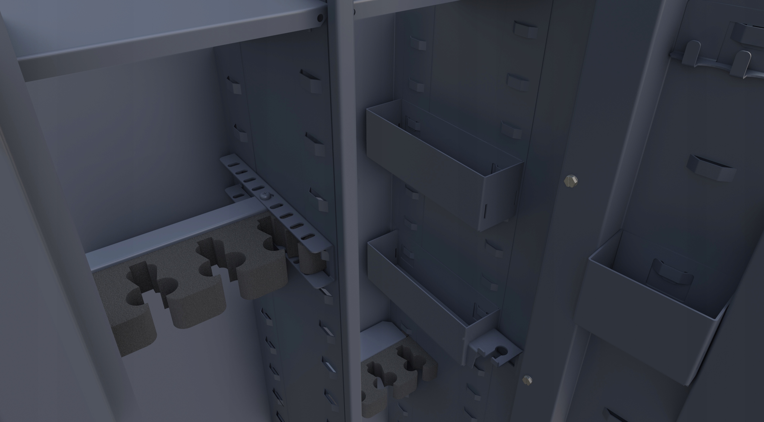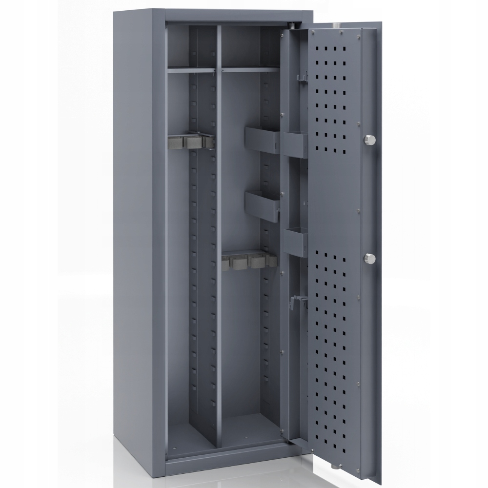 Одним из самых больших преимуществ арсенала 1243 является возможность любой стандартной настройки оборудования . Внутри сейфа есть, среди прочего, Pivot полки , которые идеально подходят для хранения документов или короткого оружия. Благодаря присутствию отдельных кронштейнов на магнитах можно поместить их на полки. Благодаря этому у нас есть гарантия безопасного хранения короткого оружия. Полем они оказывают положительное влияние на безопасное хранение оружия. Есть перфорация на двери сейфа
