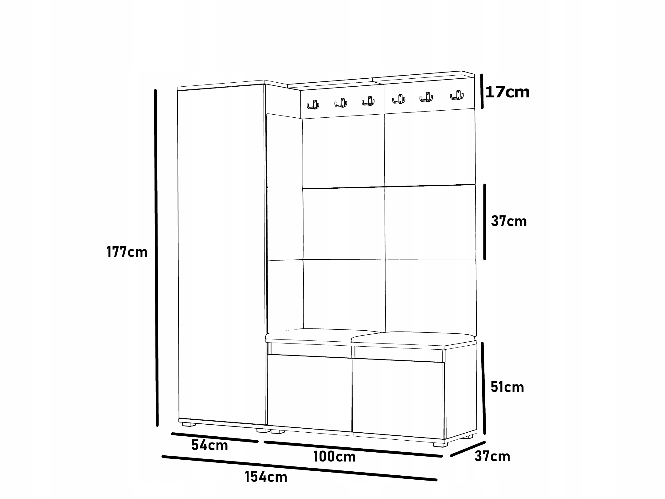 Современный, функциональный комплект для прихожей, доступен в 3-х цветовых вариантах и трех цветах сидений и панелей.